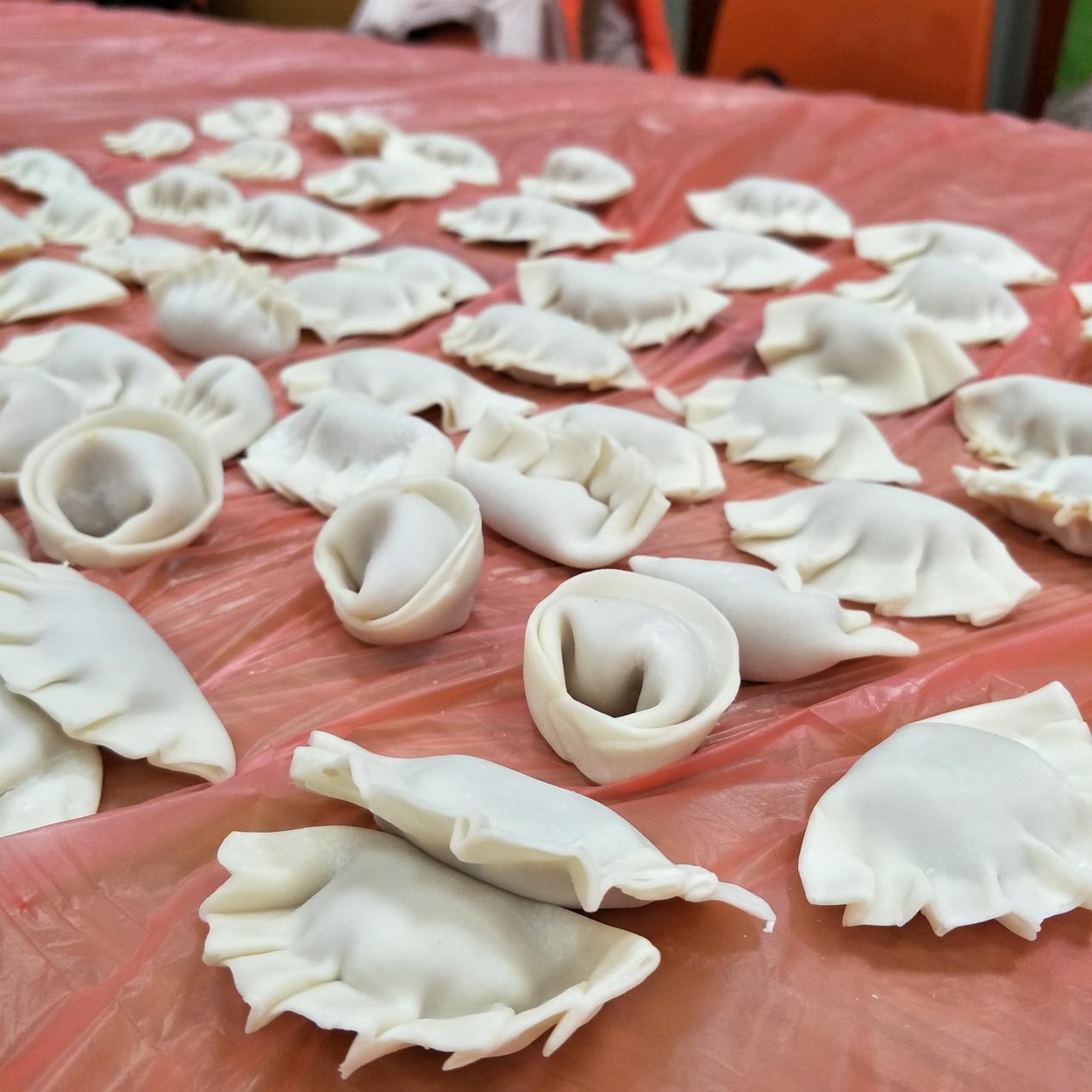 留学生们一抵达青少年宫,便受到了孩子们的热烈欢迎。而接下来的破冰热身活动挤气球,更是将欢乐的气氛推向了高潮,操场上的加油声此起彼伏。而随后的团队建设中,孩子们抢着和自己喜欢的留学生同组,大家一起取队名,选组长,画队旗,喊口号,忙得不亦乐乎。而随后的包饺子环节,是最受留学生喜欢的。大家纷纷争先恐后,跃跃欲试,包出了各种形态各异的花式饺子。