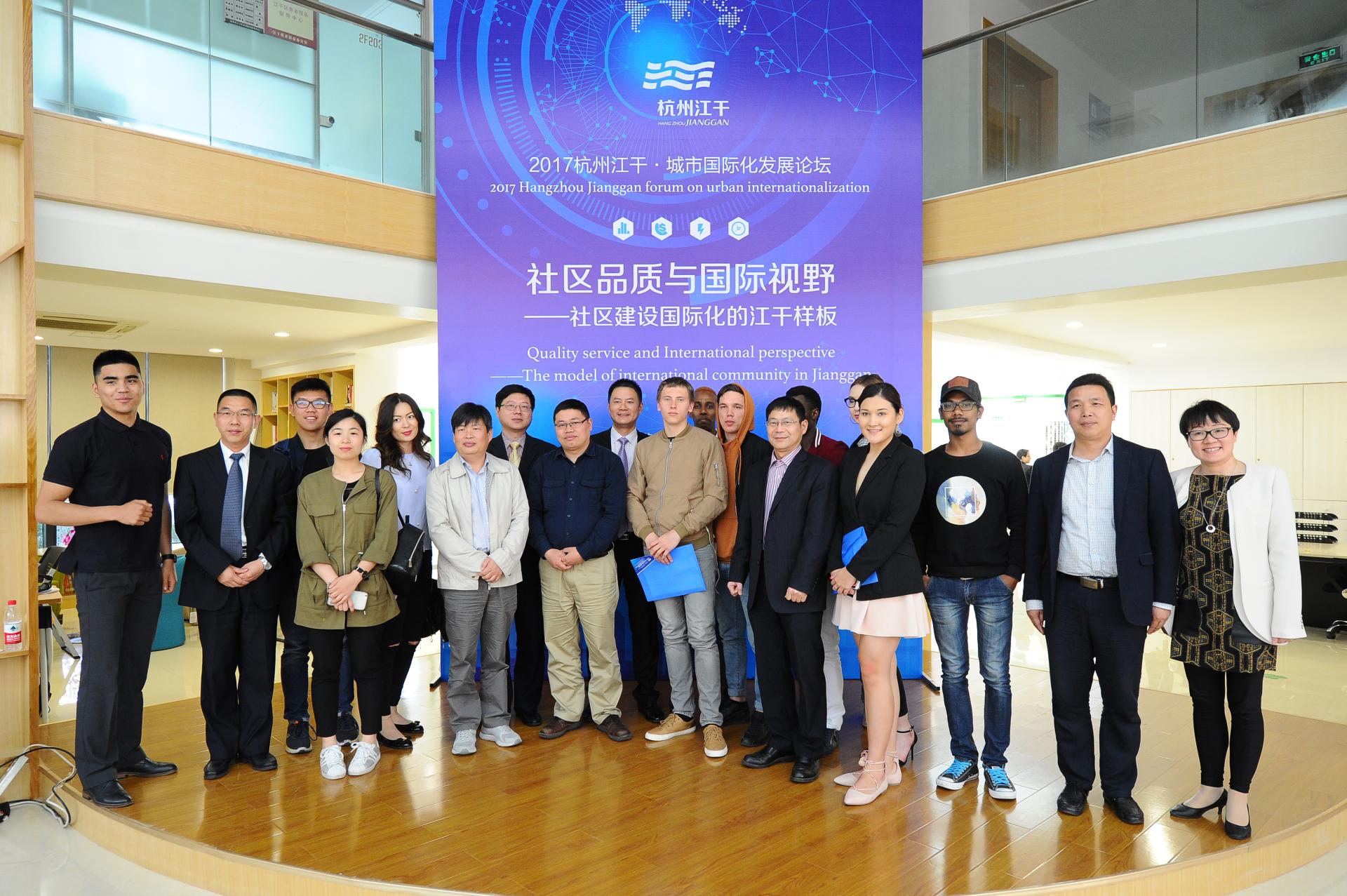 4月27日,由江干区民政局主办,杭州钱塘公益研究院承办的首届城市国际化发展“社区品质与国际视野”论坛在江干创益中心隆重举行,我院部分留学生受邀参加。