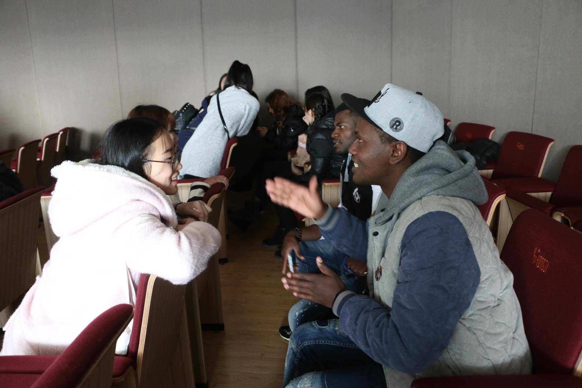 紧接着,老师让学生们自由组队,畅所欲言,为大家营造了一个轻松愉快的交谈氛围。现场座无虚席,不同国家的学生齐聚一堂,也成为了此次活动的一抹亮丽风景。