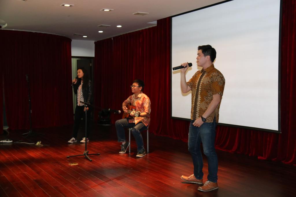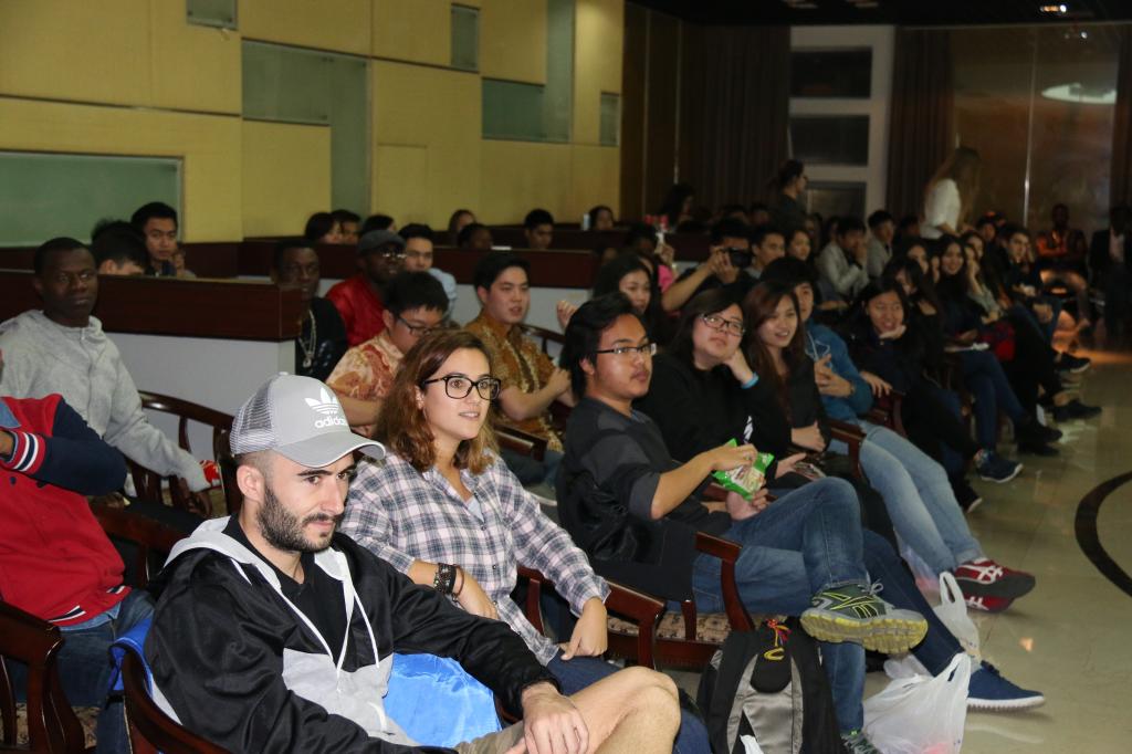 温暖而富有朝气的大家庭。接着,晚会在璀璨的灯光闪烁中,在婉转的音乐旋律中,节目依次登台。来自哈萨克斯坦的学生带来一首民族乐曲吉他弹唱,表演者以圆润的歌喉唱出了来自异域的心声;中韩两国学生合作的劲歌热舞以饱满的精神、动感的舞姿向我们展示了青春的的激情;由各国学生一起展示的服装走秀更是带来一道靓丽的风景线,华丽的礼服,清纯的民国少女,神秘的江湖大侠,在展现各国不同服饰文化的同时美不胜收;由预科生刘帆、龚立斌、邬雨笛带来的歌伴舞《宠爱》更是将晚会推向了一个高潮,歌声青春明快,舞蹈动感活力。多才多艺的各国学生们为大家倾情奉献了一场丰富的视觉和听觉的盛宴。