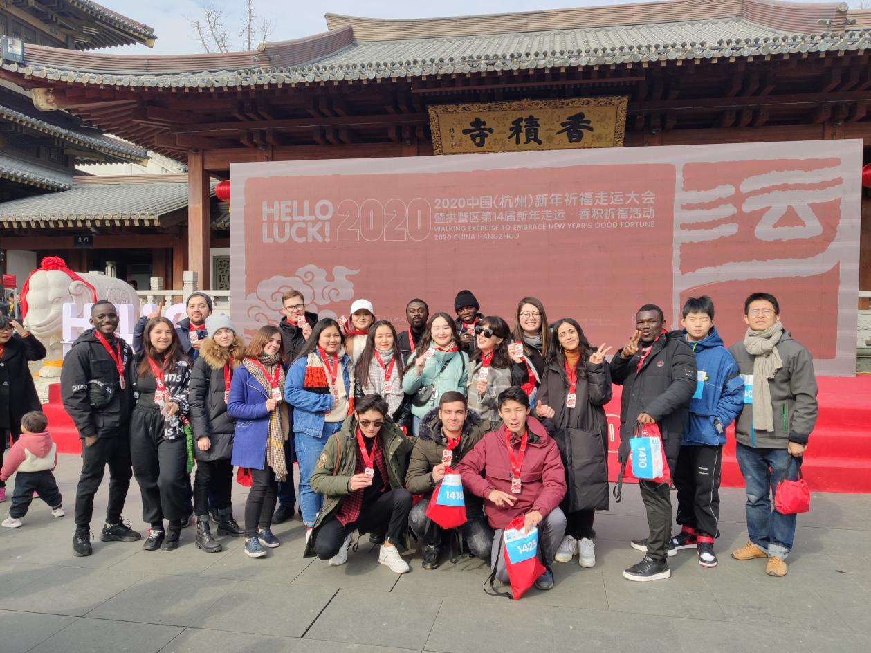 一元今复始,祈福万象新。2020年1月1日,来自俄罗斯、摩洛哥、哈萨克斯坦、吉尔吉斯斯坦等国的19名留学生受邀参加2020中国(杭州)新年祈福走运大会。