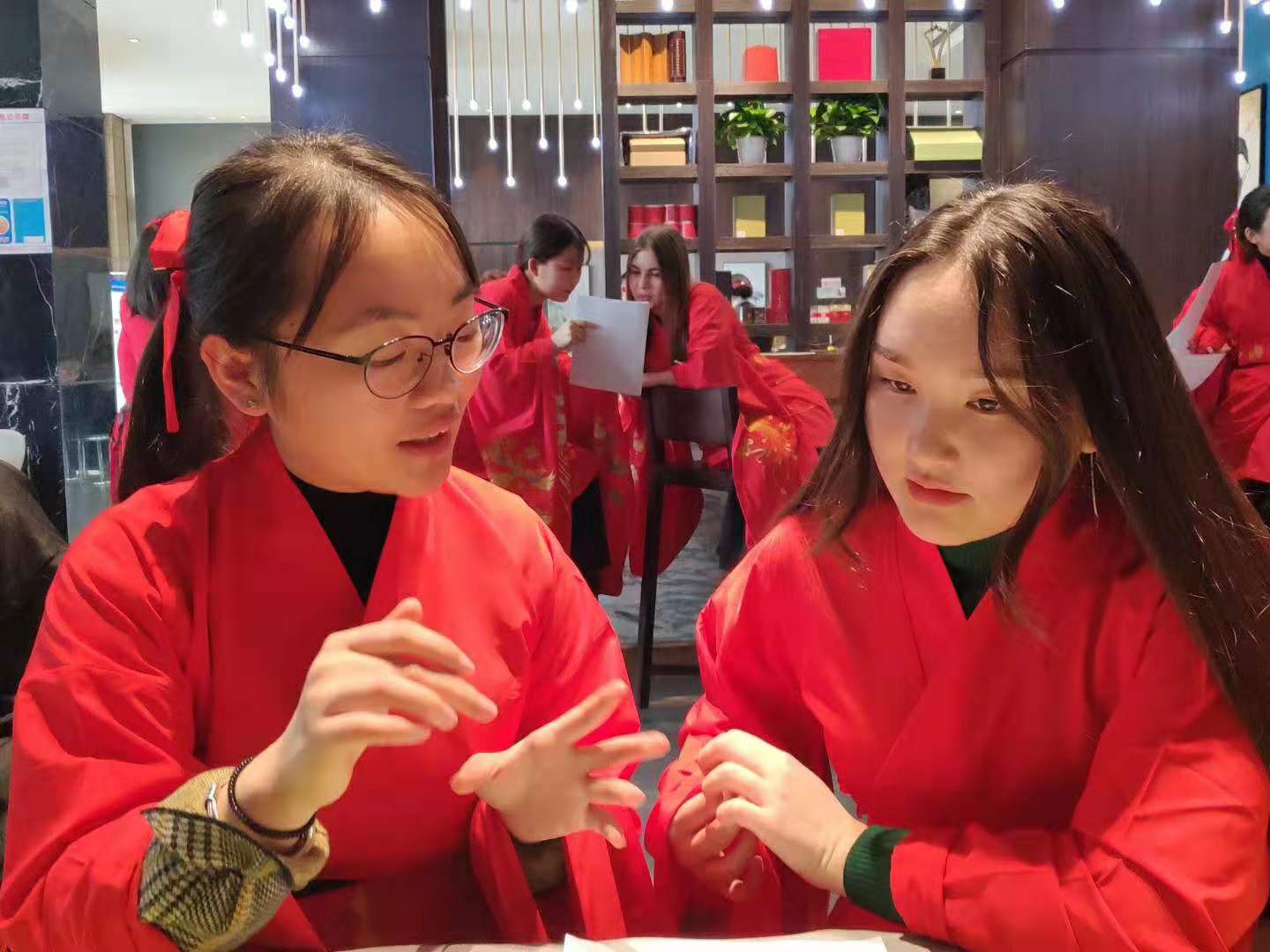 来自不同国家,拥有不同肤色的中外学生此刻相聚一堂,共同感受着中国古老文化的魅力。多元文化于此融汇,似是形成了一道熠熠闪光的文化长河,浩浩荡荡;留学生与中国学生,心与心的交织,似是燃起了一点暖洋洋的星星火光。