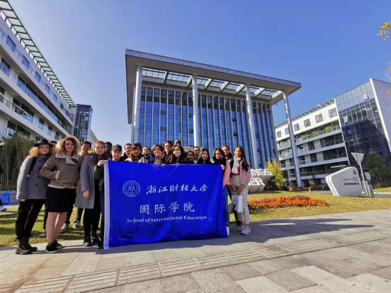 2019年11月19日下午,来自日本、泰国、俄罗斯、印度尼西亚、摩洛哥、哈萨克斯坦等国的20名留学生应邀来到位于杭州市西湖区的云栖小镇参观学习,外国语学院商务英语系的师生一同前往。