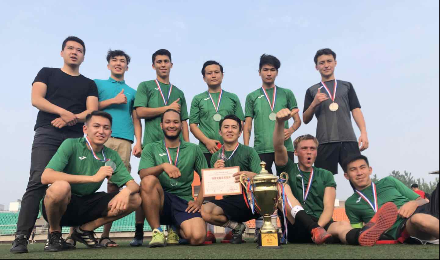 在历时两个多星期的激烈比赛中,我院留学生足球队团结一致,众志成城。在小组赛、淘汰赛中所向披靡,以全胜的战绩进入决赛。决赛中,十一名来自哈萨克斯坦和乌兹别克斯坦的帅气小伙们,动作娴熟,配合默契,打出了水平也打出了气势,球队的精彩表现赢得了在场观众的喝彩。