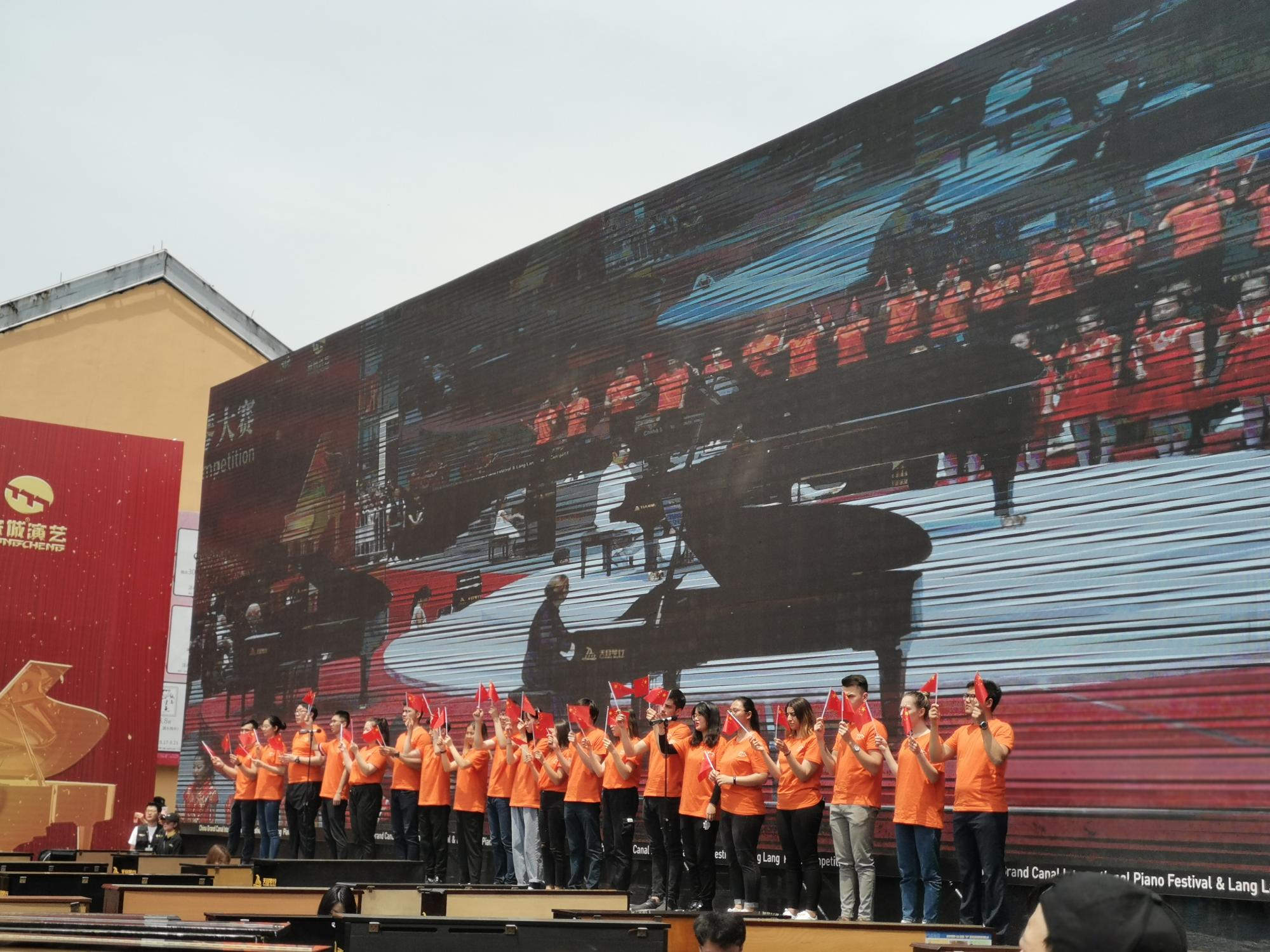 留学生、杭州文渊小学合唱团学生与现场观众一起唱响《我爱你中国》,把开幕式活动推向高潮。一时间,《我爱你中国》钢琴曲和歌声飘扬在浙江的大运河沿线上空,表达着对祖国的无比热爱和自豪,向新中国成立70周年献礼!