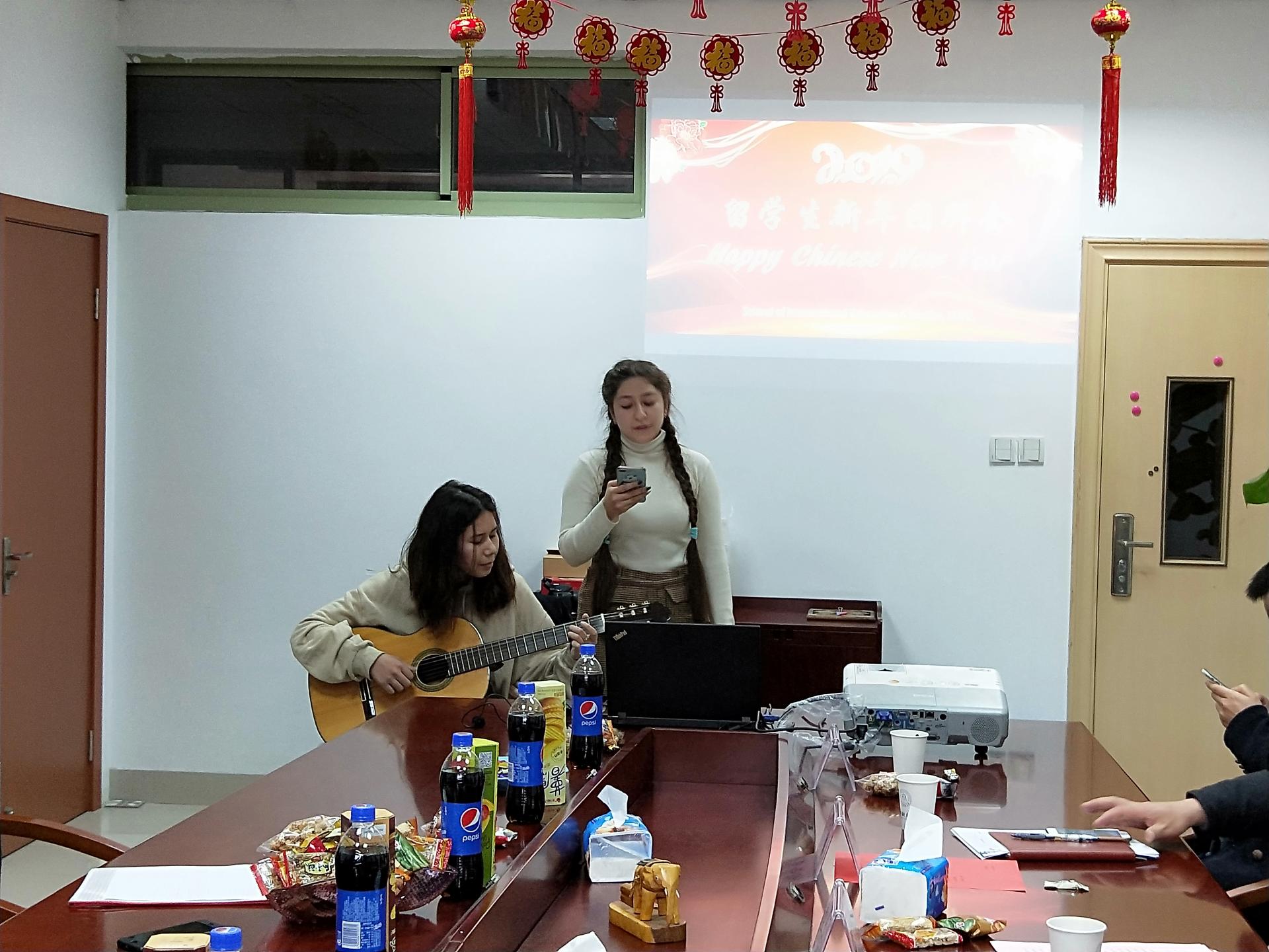 师生在会议室济济一堂,2019年留学生新春团拜会在此举行。李占荣副校长出席团拜会,慰问寒假留校的留学生,并送上了新春的祝福,衷心祝愿他们在学校度过一个难忘的中国春节。