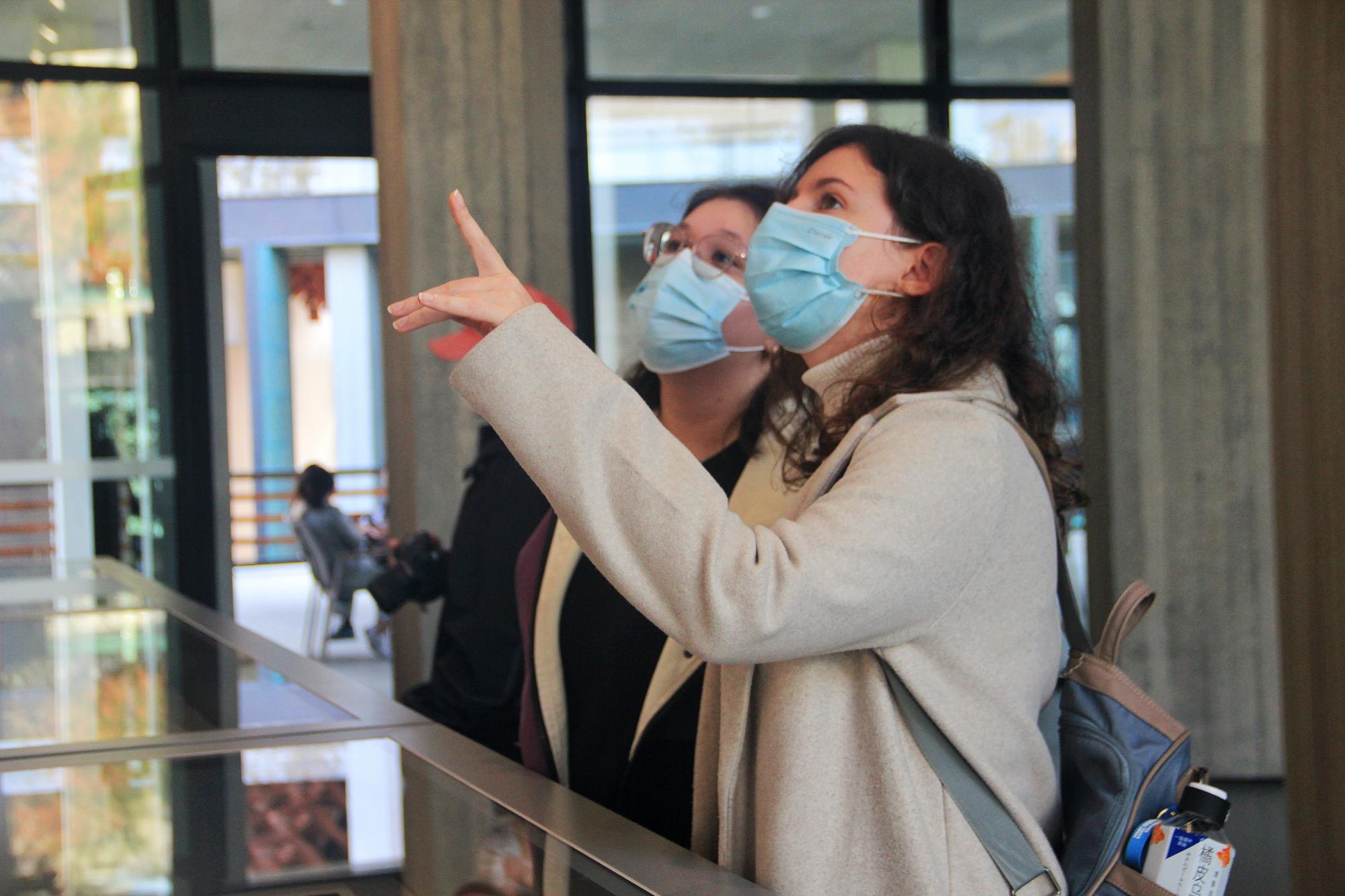 参观过程中,师生们惊喜地发现馆内运用了许多数字技术,增强了参观的体验感和新奇感。通过扫描二维码参与《百家姓》的互动,放飞姓氏孔明灯,查看姓氏来源;在大屏幕上完成经史子集的考题,搭建起古今互动的桥梁;通过科学技术收集人们心目中的未来版本。