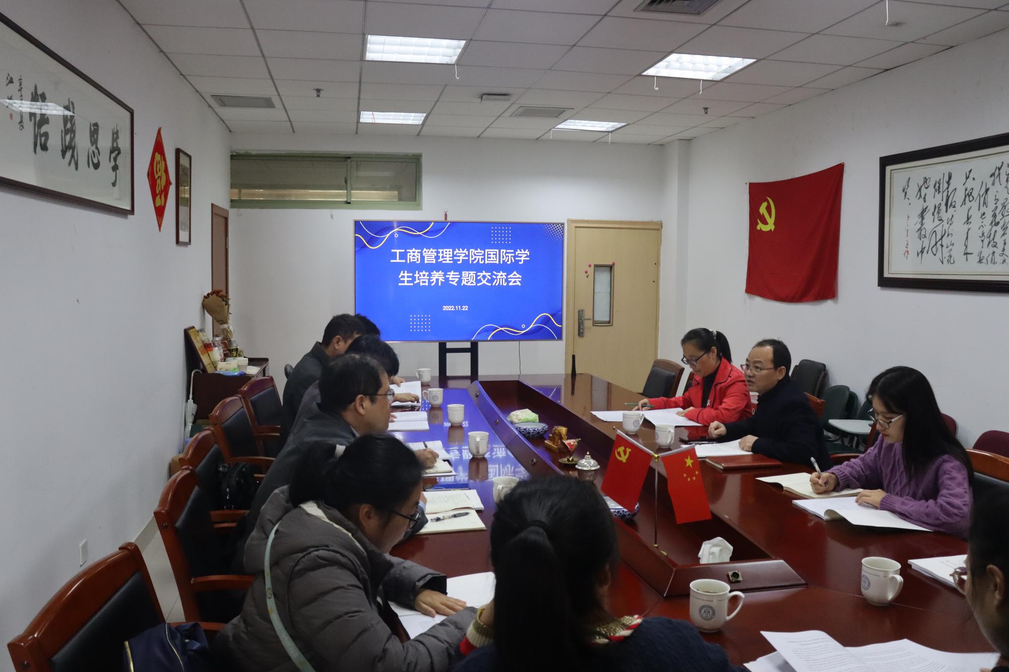 教学档案检查和督导听课情况向工商管理学院的各位院长作了汇报。柴志贤院长就工商管理学院国际本科生、研究生的培养相关环节与工商管理学院进行了深入交流与探讨。此外,双方还重点就2022级工商管理学院国际研究生手册进行了沟通与交流。