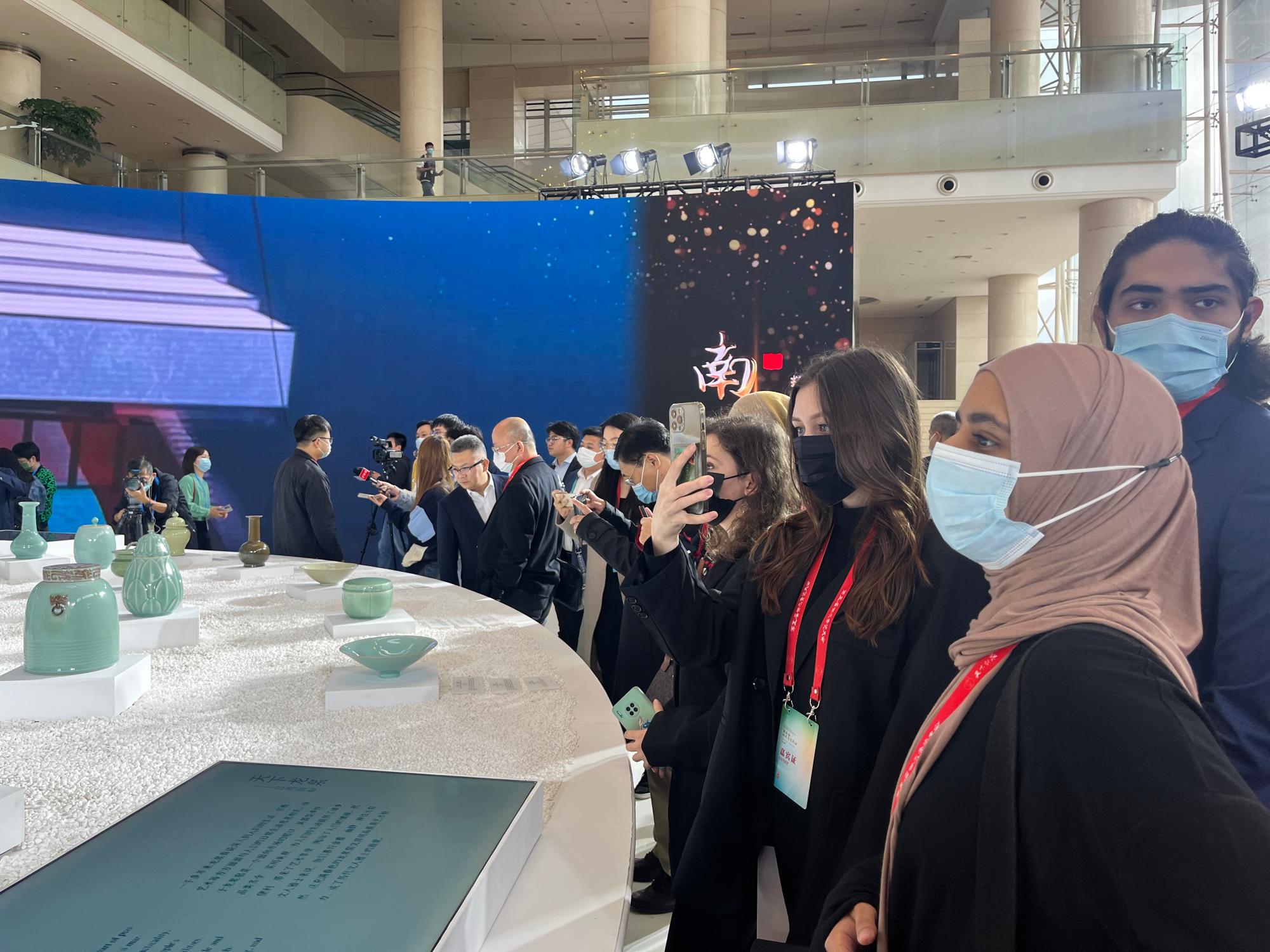 的喜爱和欢迎,大家都感叹龙泉青瓷制作精美、造型优雅、釉色清润,独具匠心。展台前,大家纷纷驻足仔细观看,并拍照留念。