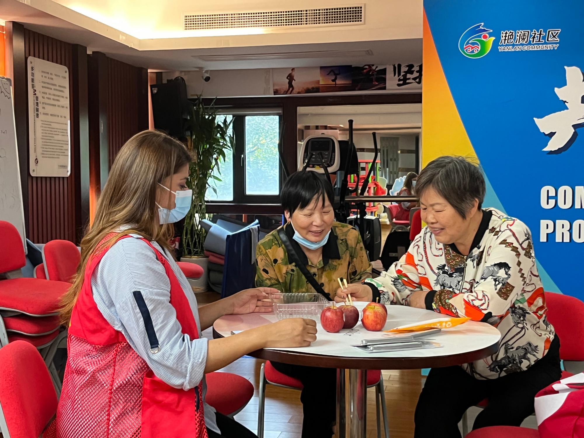 们分享中国传统文化。老人们高兴地表示,敬老爱老是中国传统美德,更是社区一贯秉持的道德信仰,此活动让老人们感受到了社区和大学生志愿者们的关爱。