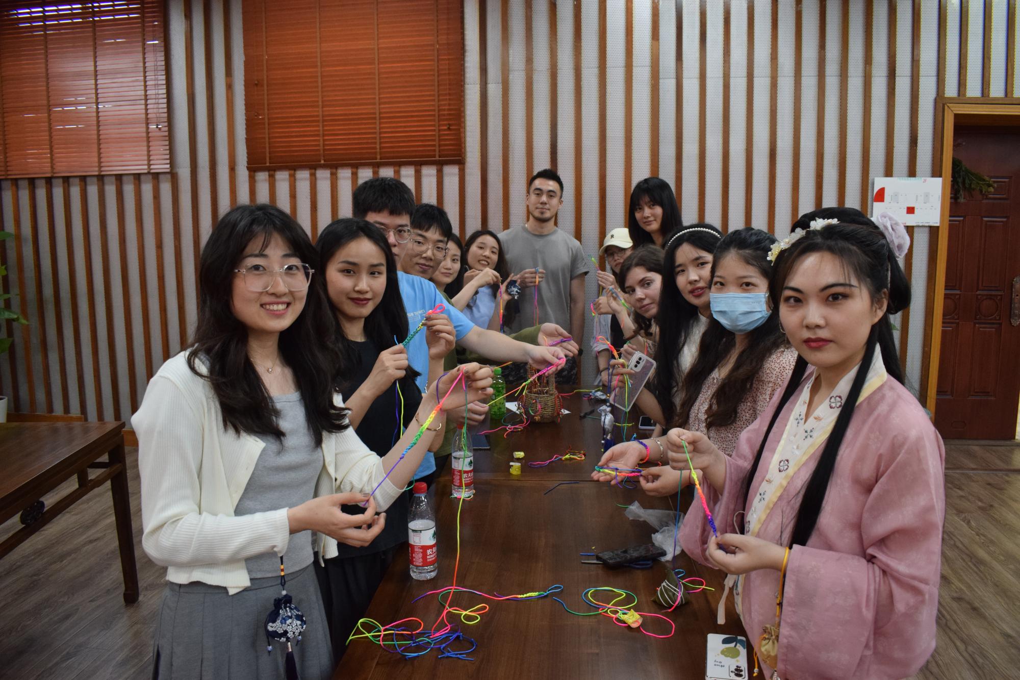 部分外籍教师、留学生与人文与传播学院的学生一起,用五彩绳编出一道道友谊之桥,将深深情谊包入粽中,在欢声笑语中共同感受中华文化的魅力与温情。