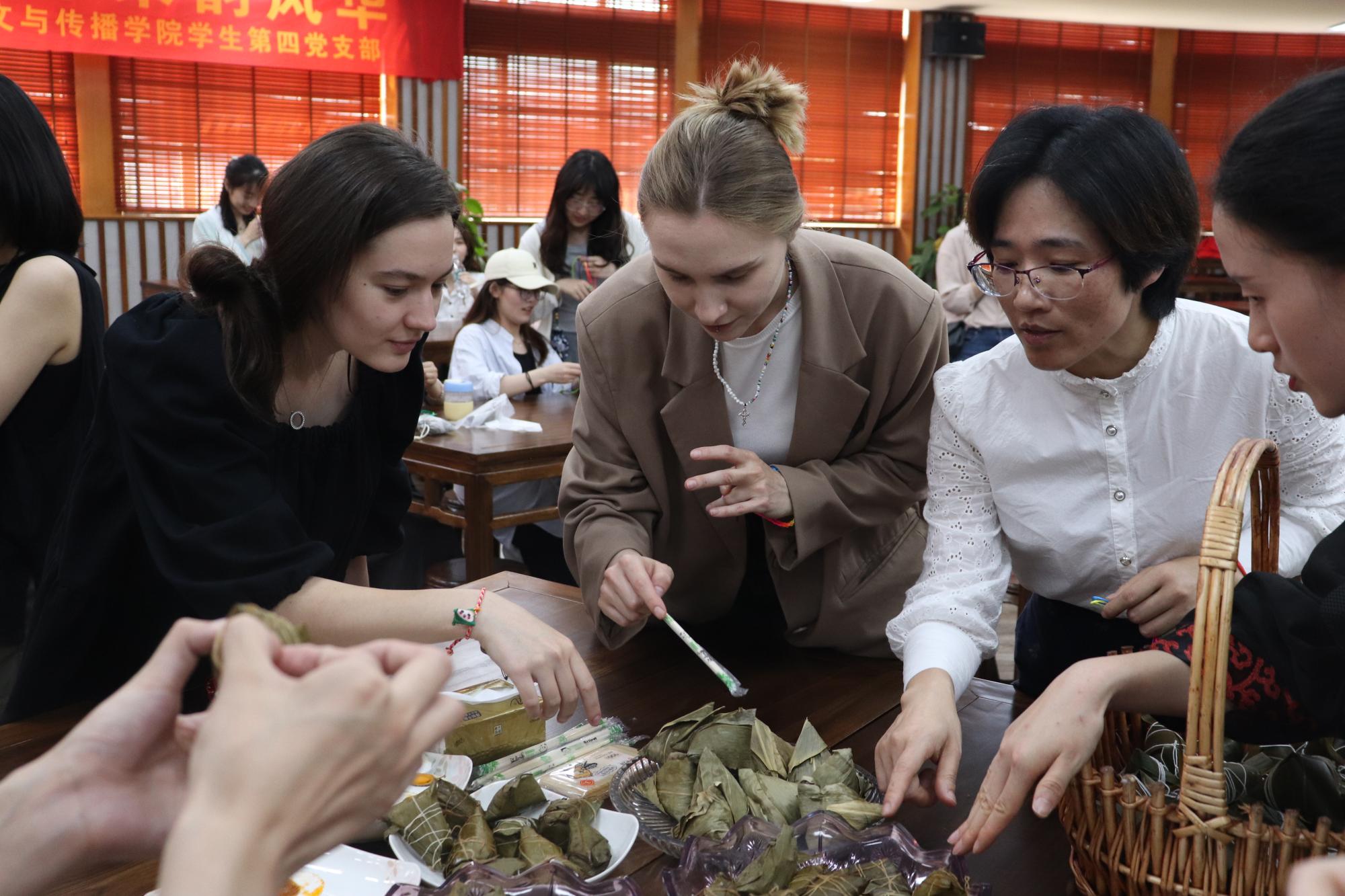 在包粽子活动中,中外学生间的互帮互助、共同协作更是体现了此次活动加强沟通交流、增进中外师生友谊的目的。