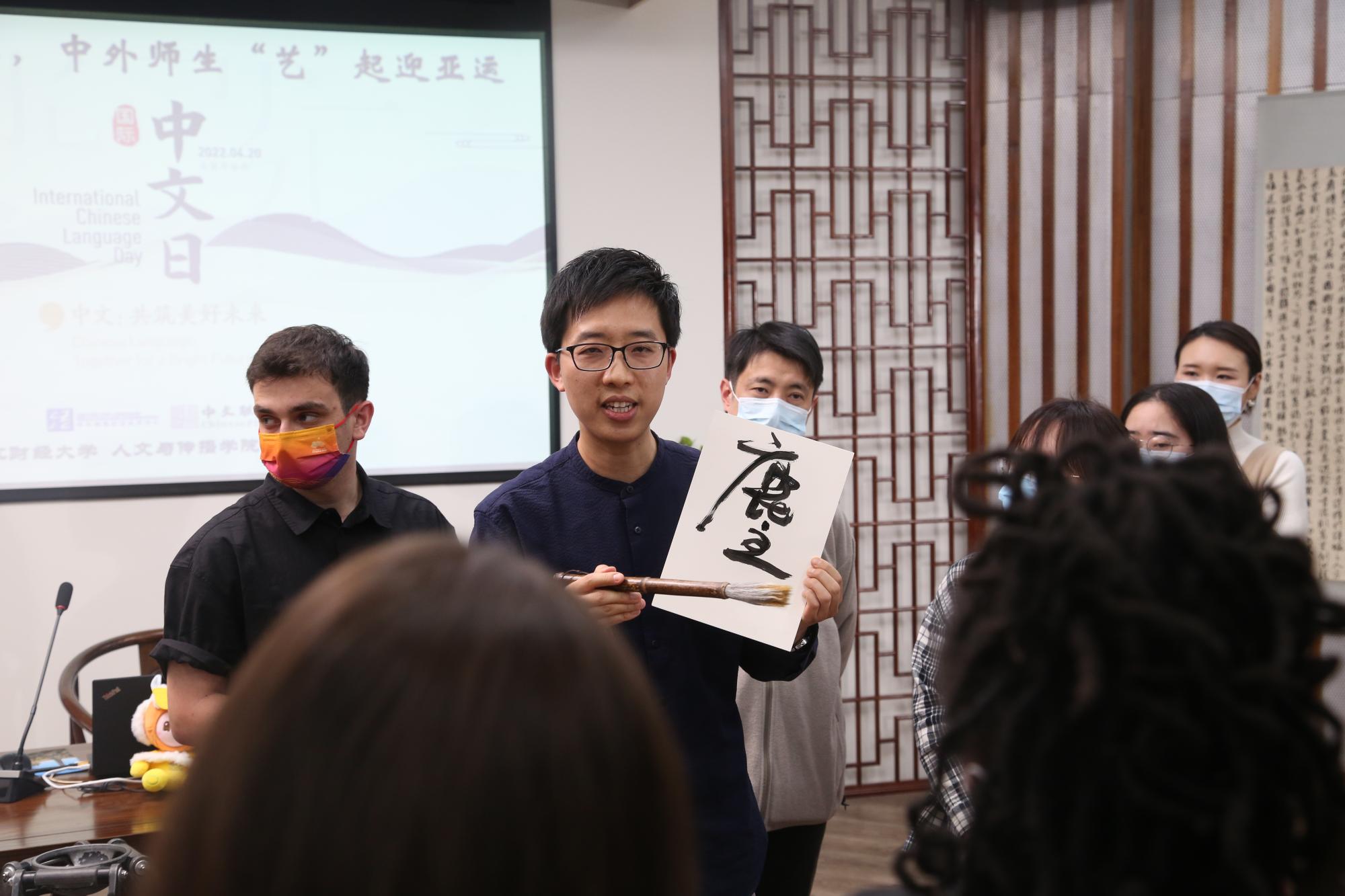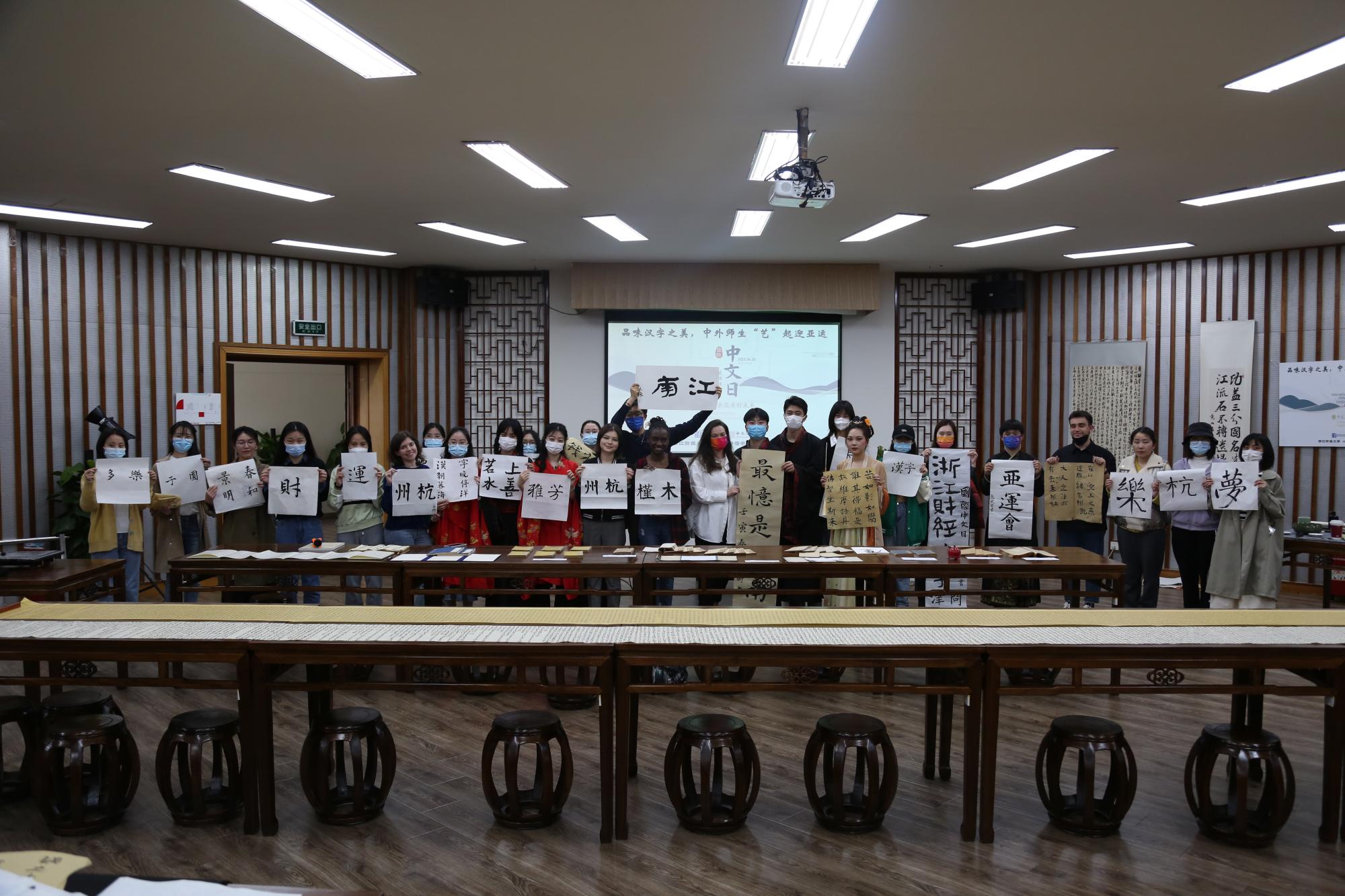 参与了“品味汉字之美,中外师生‘艺’起迎亚运”活动,在人文学院问津书院与中外师生一起品味汉字之美。