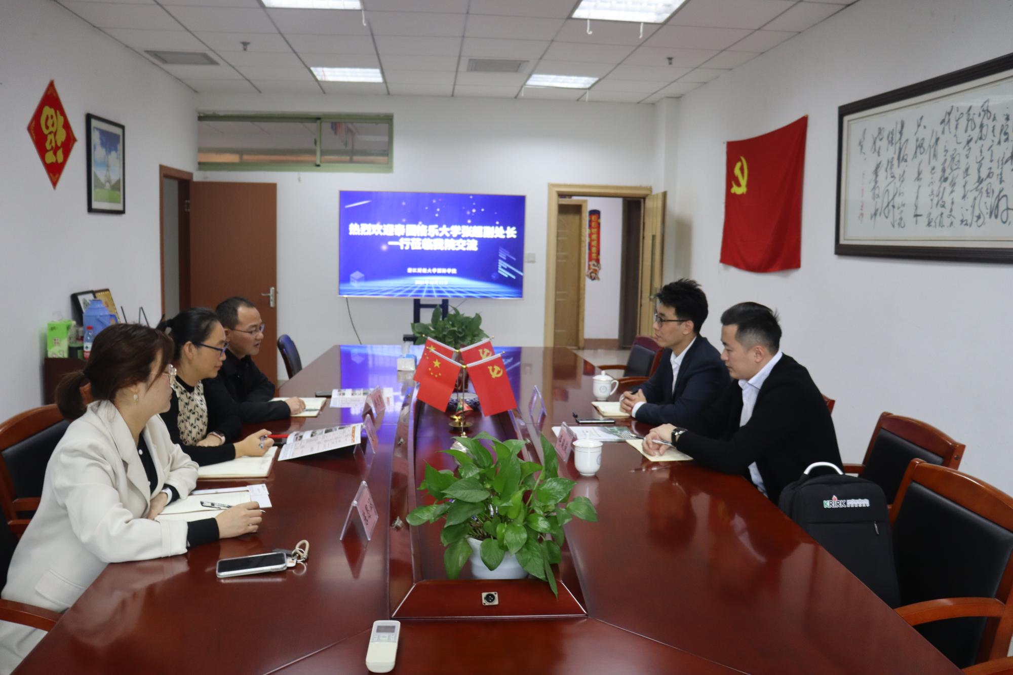 10月13日,泰国格乐大学国际交流处副处长张超一行来我院交流麻豆视频 招生事宜。麻豆视频 麻豆视频 副院长柴志贤、院长助理赵倩、留学生招生负责人陈思涵出席会议。