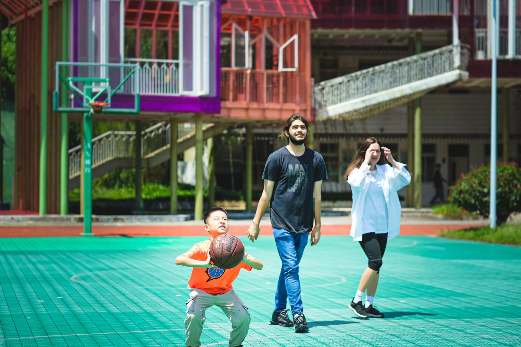 第一站,大家来到了淳安县富文乡中心小学,参观这所立根于绿水青山间,供孩子们学习娱乐为一体的立体新世界。色彩斑斓的玻璃建筑也激发了留学生们的童心,在操场上和小朋友们打起了篮球和排球。随后,一行人沿着浙江“最美公路”之一的淳杨线驶入了“梦开始的地方”——淳安县枫树岭镇下姜村。从前的下姜村道路泥泞,村民温饱成问题。在“绿水青山就是金山银山”理念指引下,下姜村将红色旅游资源与新农村建设结合,逐渐变身“红色旅游之乡”。在下姜村,留学生们从村落风貌、乡村传统文化、当地民众日益提高的生活水平等多个角度感受了我国的农村建设和发展成就,还给当地的小学生们上了一堂生动有趣的文化交流课。课程结束后,留学生们与当地的小朋友依依不舍地道别,来自赞比亚的留学生木槿感触颇深,希望毕业后能来这里做一名乡村教师。