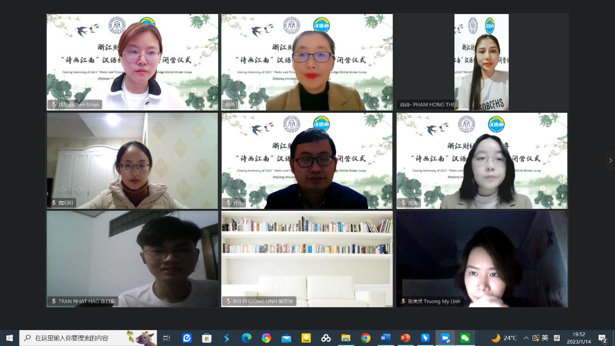 本次冬令营共有来自越南、摩洛哥等国的100多位学员报名参加,共有80多人顺利完成平台录播课程、在线语言与文化课程学习。为期10天的课程,给学员带来“诗画江南”的云游体验,学员们惊叹于浙江的美丽乡村,有意思的传统文化与智慧杭州之美。在线语言教学、专题讨论激发了学员们学习中文的热情。诗词朗诵、画扇,学员们一个个多才多艺,展示了丰富的学习成果。