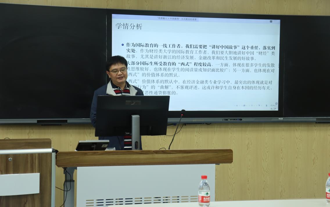 与中国学生在学习理念、学习思维方面差异,通过生动案例,展示了独特的留学生课程教学方法。倪文斌教授以《Operation Management》为例,从理论教学、实践操作两方面详细讲解了留学生课程授课的方法和策略。孙久荣副教授认为教师要以学生为中心,基于目标导向,根据学生背景做好教学设计,并建议应注重与留学生的共情交流。