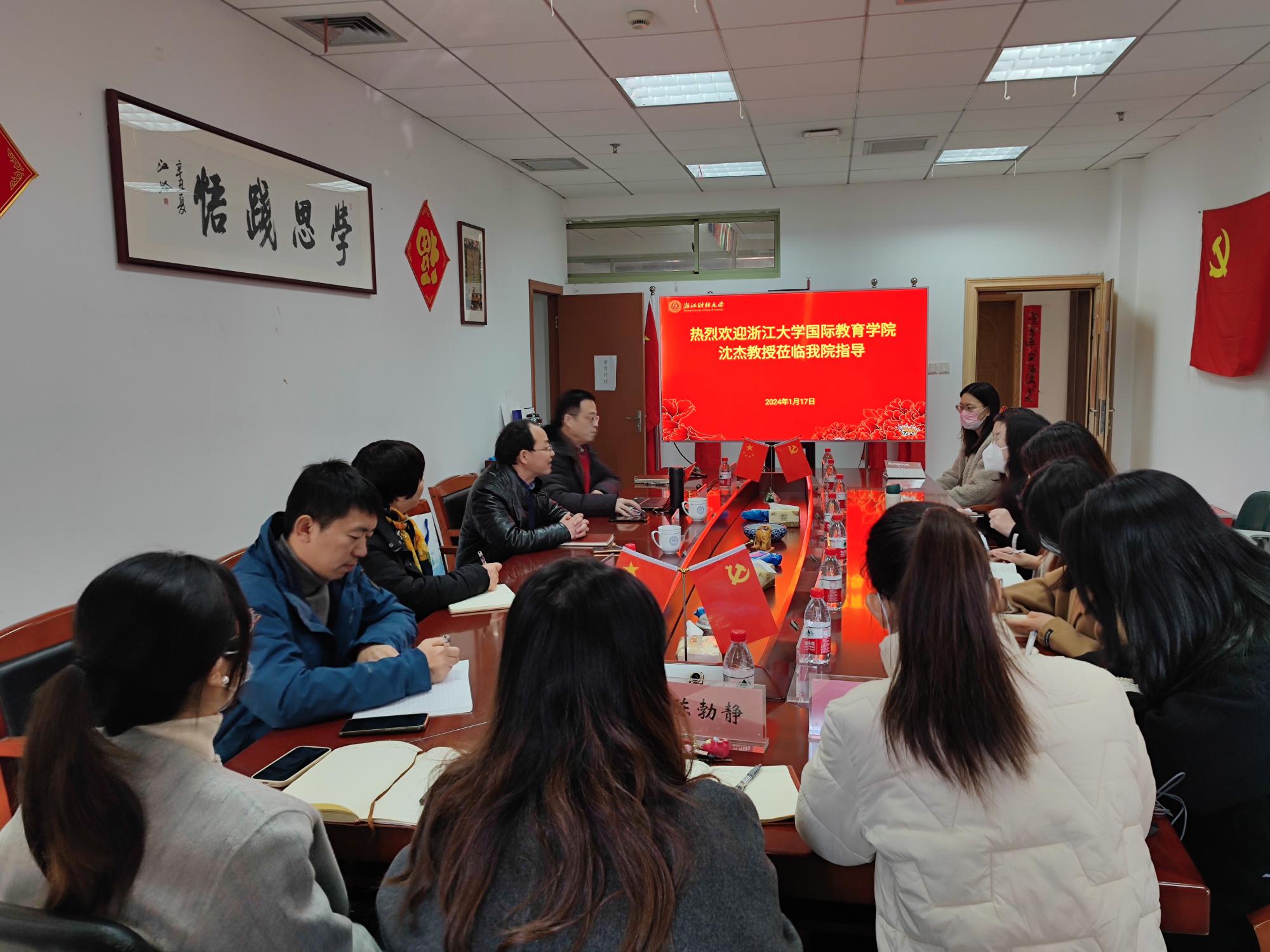 1月17日上午,浙江大学国际教育学院沈杰教授来我院指导交流。沈杰作了《以新发展理念引领来华留学教育高质量发展》的专题讲座。讲座环节由麻豆视频