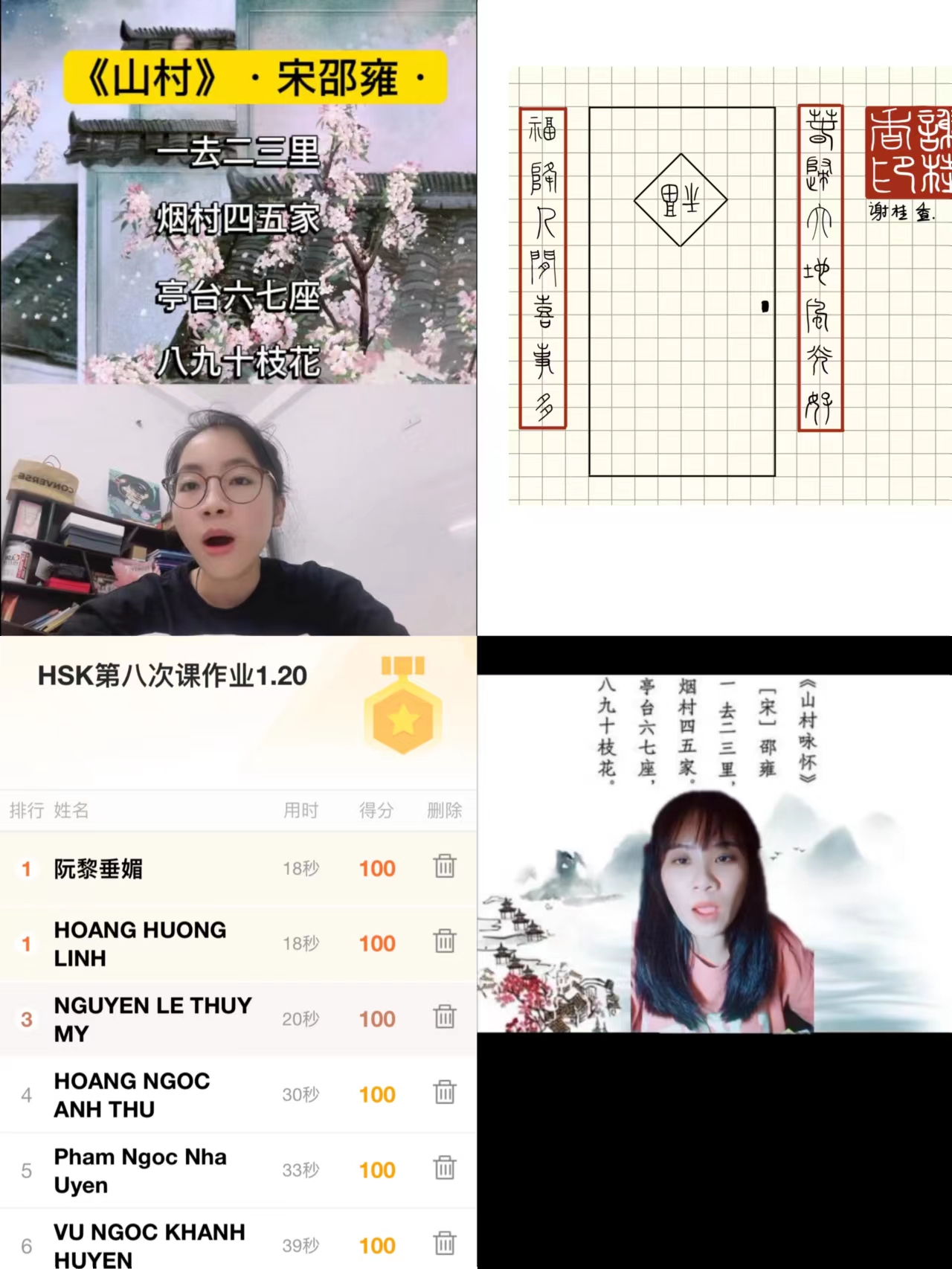 承办的“汉语桥·HSK4级强化训练”线上冬令营经过10天高强度的集训,于2024年1月22日顺利结营。本次冬令营共吸引了俄罗斯、越南、日本、印尼等12个国家和地区的1500名学员注册,为保证教学质量我们邀请了200名学员参加直播授课。学员对本项目的实施以及任课教师的辛苦付出感恩满满,有越南学生在作业中用小篆写了“越中情谊深,同志加兄弟”的字幅,以表达对“汉语桥”冬令营项目的感激之情和对老师们的深情厚意,老师们也勉励学员们继续努力学习汉语。有学员表示将来一定选择美丽的中国、美丽的杭州—麻豆视频