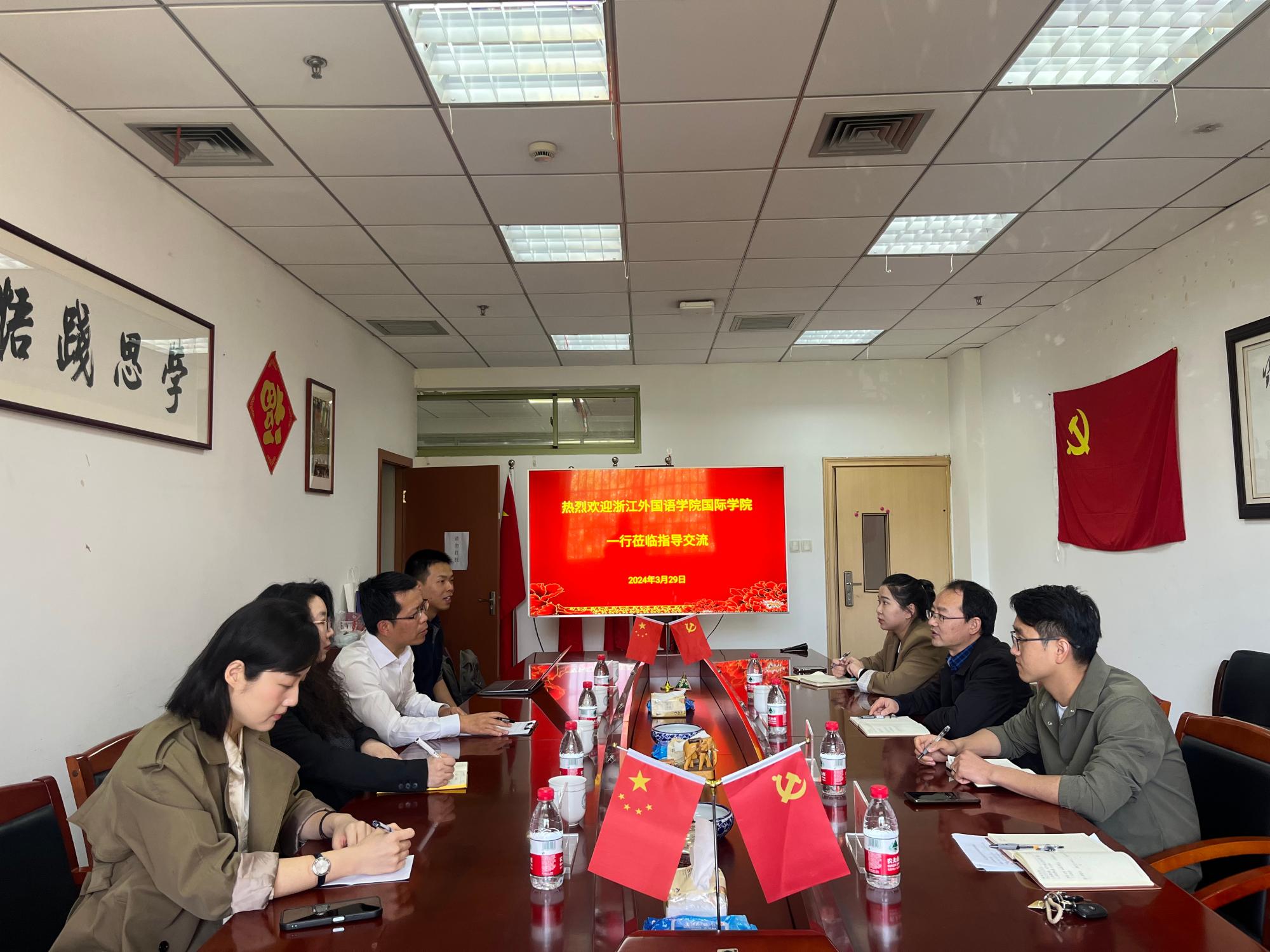 3月29日下午,浙江外国语学院麻豆视频 一行来我院调研交流,院长柴志贤及相关工作人员参与接待。