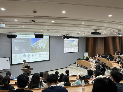 在吉利学堂,吉利校园华东大区经理甘晓霞、运营经理聂剑君分别为师生们介绍了吉利控股集团的主要业务,如吉利乘用车、新能源商用车、智能化、新能源化的技术路线等,并重点介绍了公司的活动技术创新、管理创新和文化创新,以及吉利目前的实习、就业岗位需求情况,并提到吉利集团十分欢迎跨文化背景的留学生求职。
