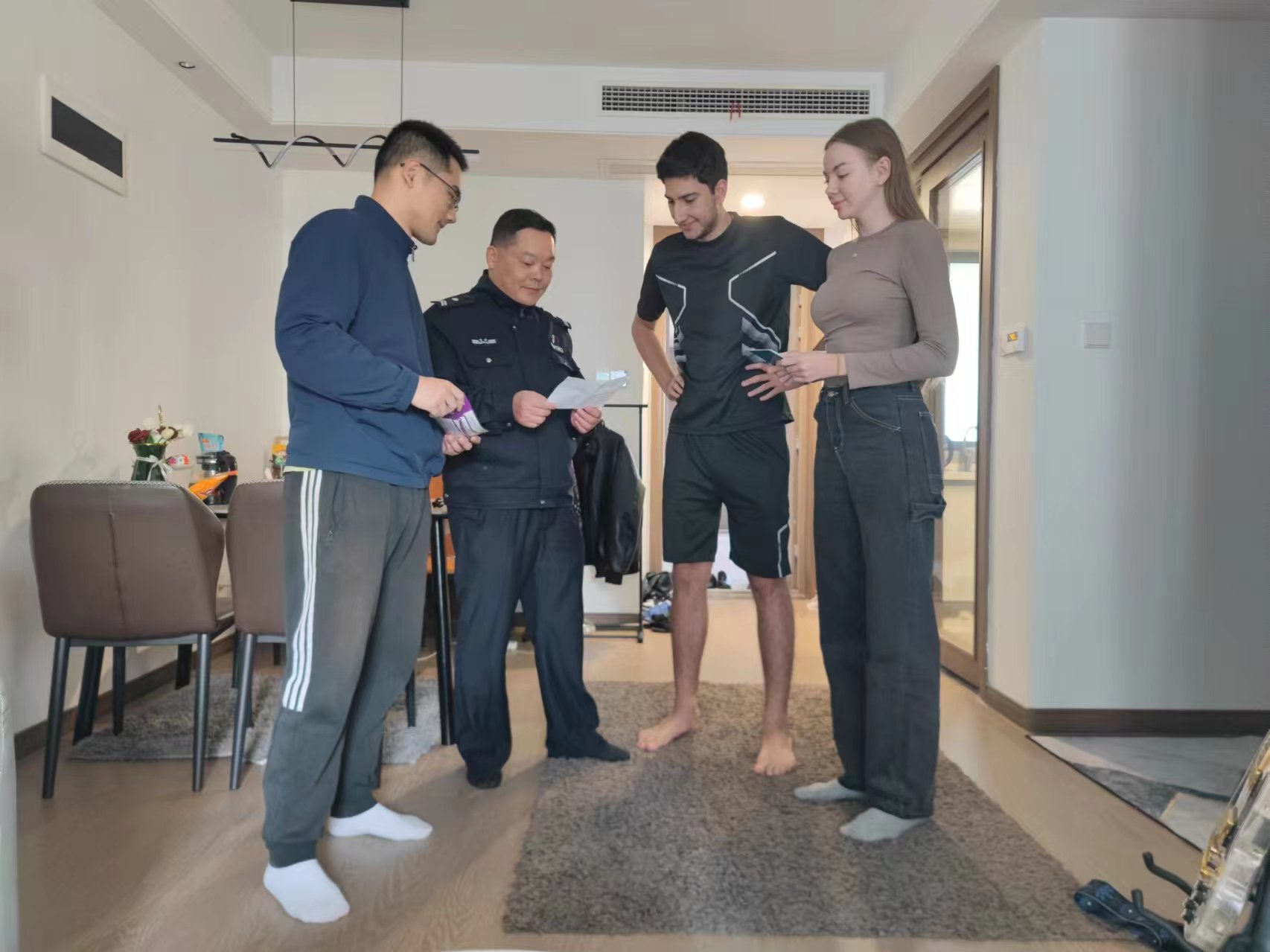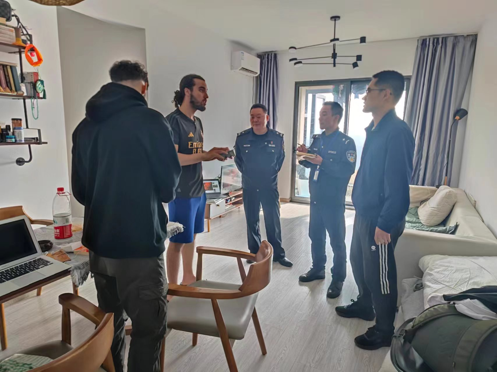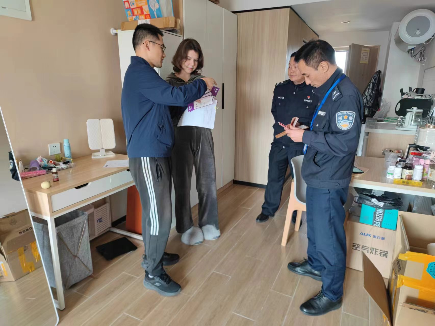 副院长黄志雄、留学生辅导员汪博林、辖区派出民警及社区工作人员组成的校外住宿检查工作组,对校外住宿留学生进行了实地走访。