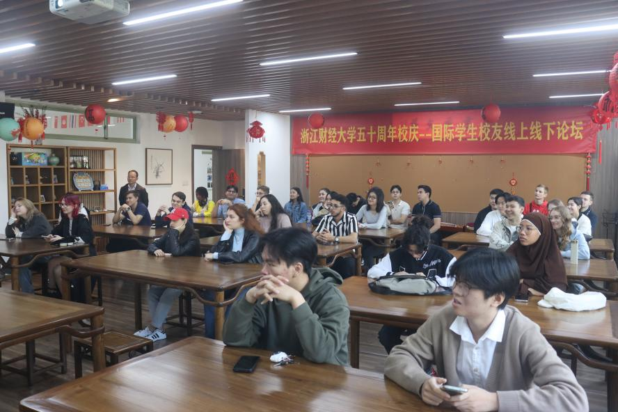 首先,柴志贤院长对专程返校和线上参加论坛的校友们表示热烈欢迎。他指出,母校是你们的第二个家,浙财大见证了你们弥足珍贵的求学岁月,希望校友们能情系母校,常回来看看,并在各自工作的领域发光发热,为促进中外经贸往来,中外友好交流贡献自己的青春力量。