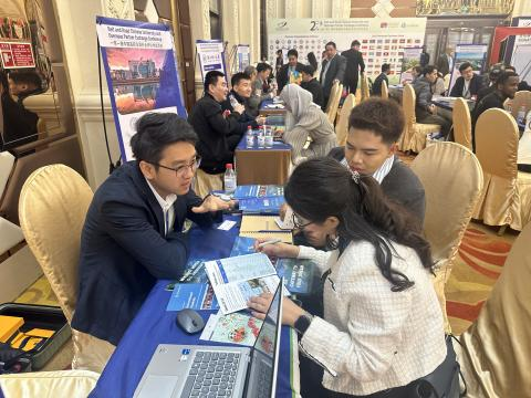 、海外高校代表、教育机构等人员详细介绍了学校的办学理念、区位优势、特色专业、奖学金政策以及申请流程等,与来自泰国、印度尼西亚、老挝、阿尔及利亚、坦桑尼亚等国家的院校与机构代表进行了20余场一对一线下洽谈,并互换联系方式,以期更好推进后续合作。