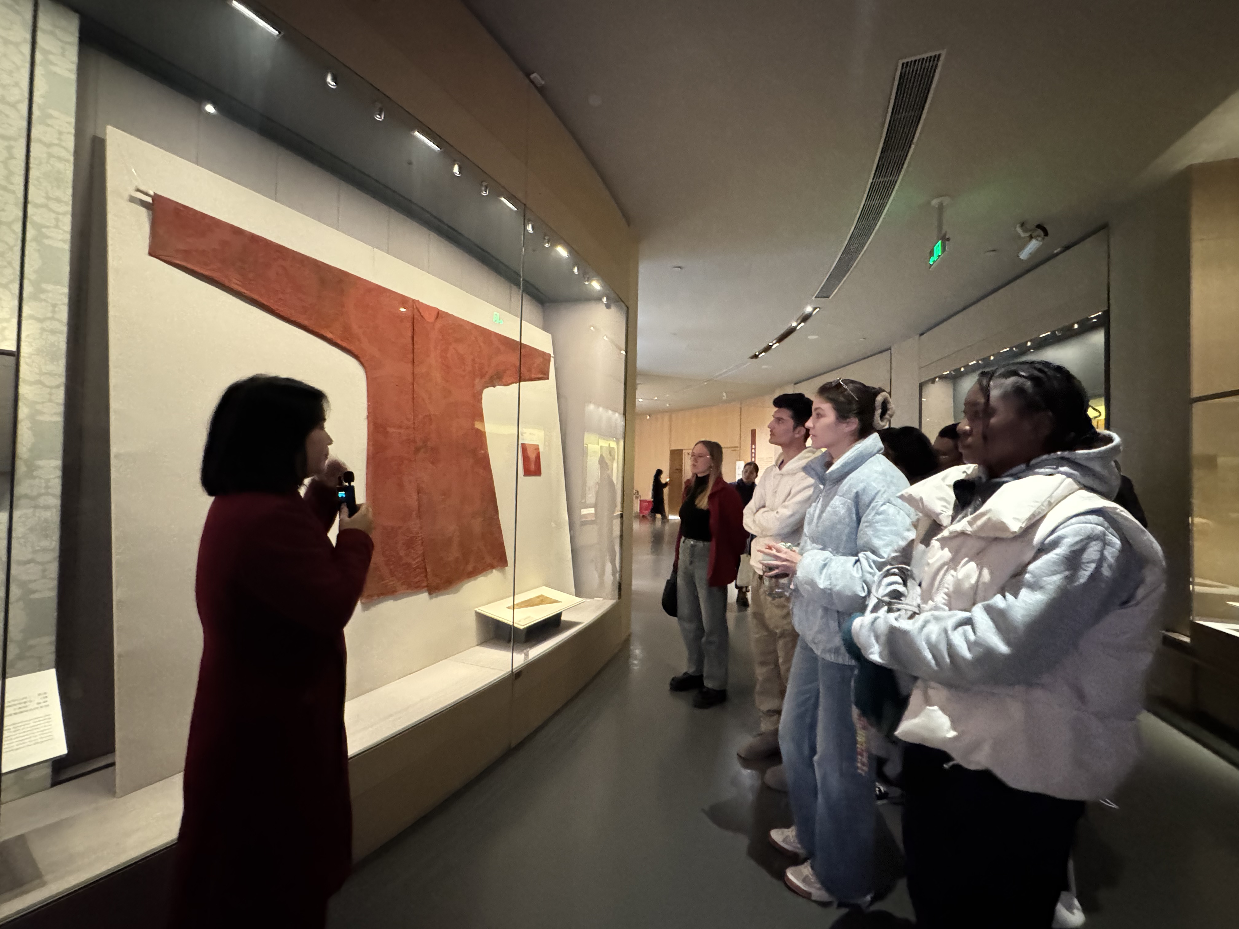 他们在丝路馆见证了从新石器时代到明清时期中国丝绸的辉煌历史,感受着古代工匠们巧夺天工的技艺。