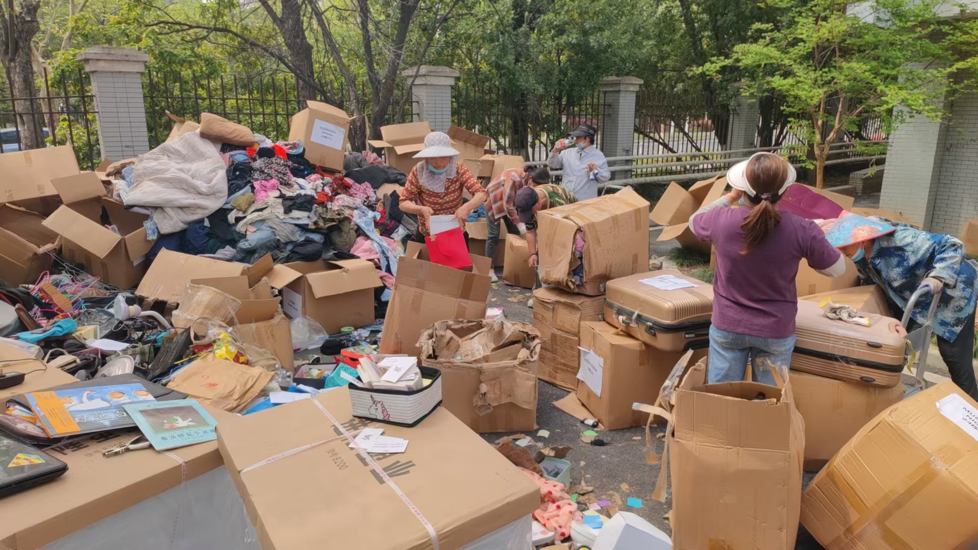 清理现场,十余位保洁人员在仓库中耐心开启一个个尘封的纸箱。面对堆积如山的行李,她们严格遵循既定程序:对电脑、平板、文件资料等贵重物品或重要私人物品,逐一登记、分类整理、妥善封存;对已过期变质、失去使用价值的食品、日常消耗品及部分陈旧衣物、普通厨具等,进行集中清理处置。