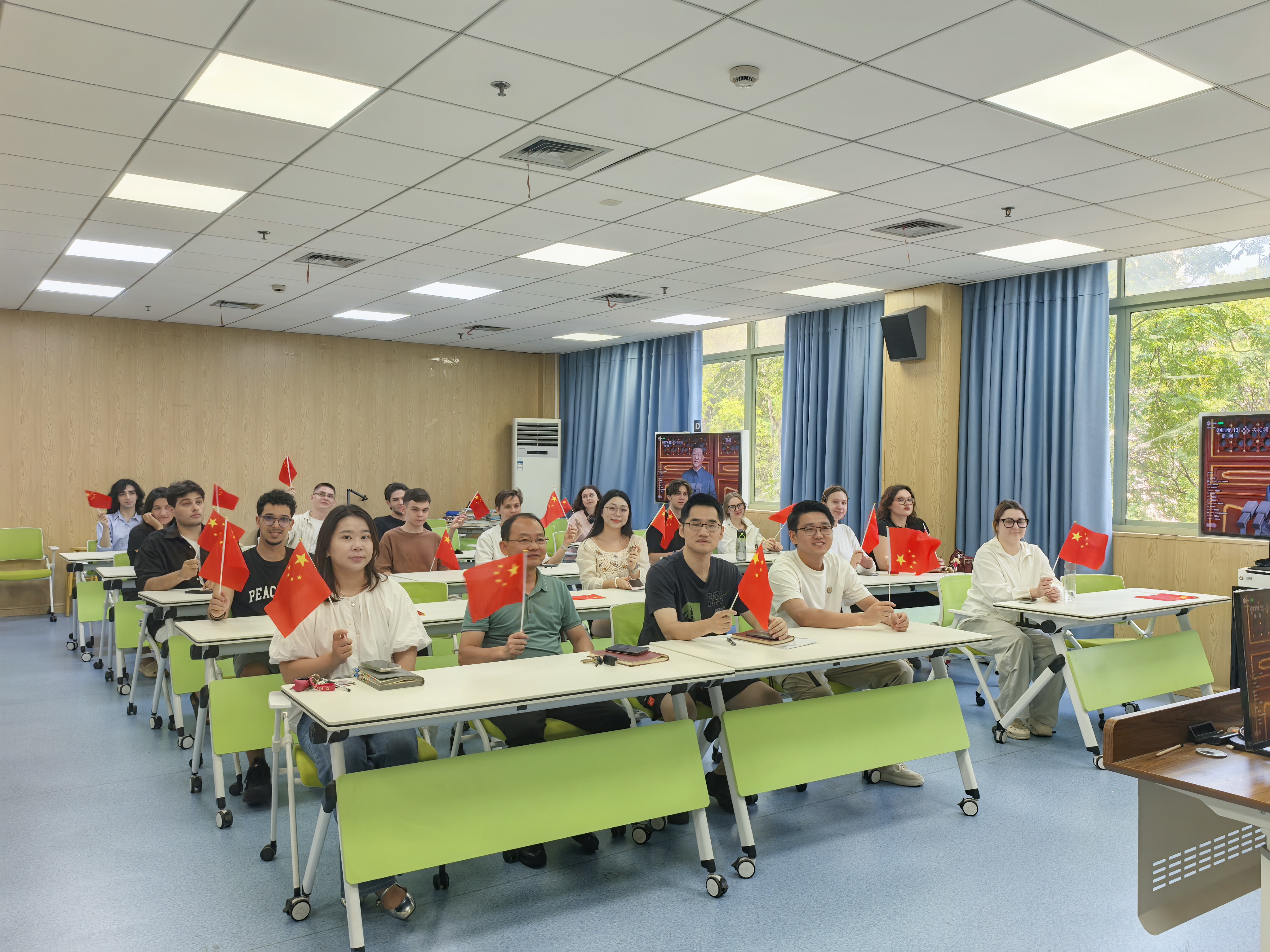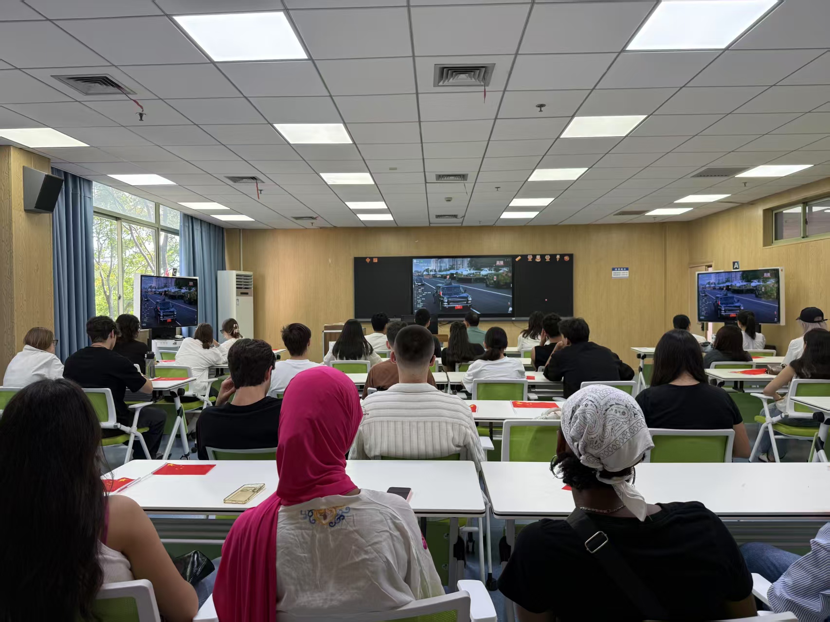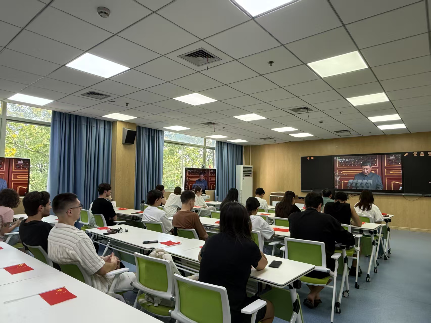 集中观看纪念中国人民抗日战争暨世界反法西斯战争胜利80周年大会直播。学院领导、辅导员和来自11个国家的30余名麻豆视频