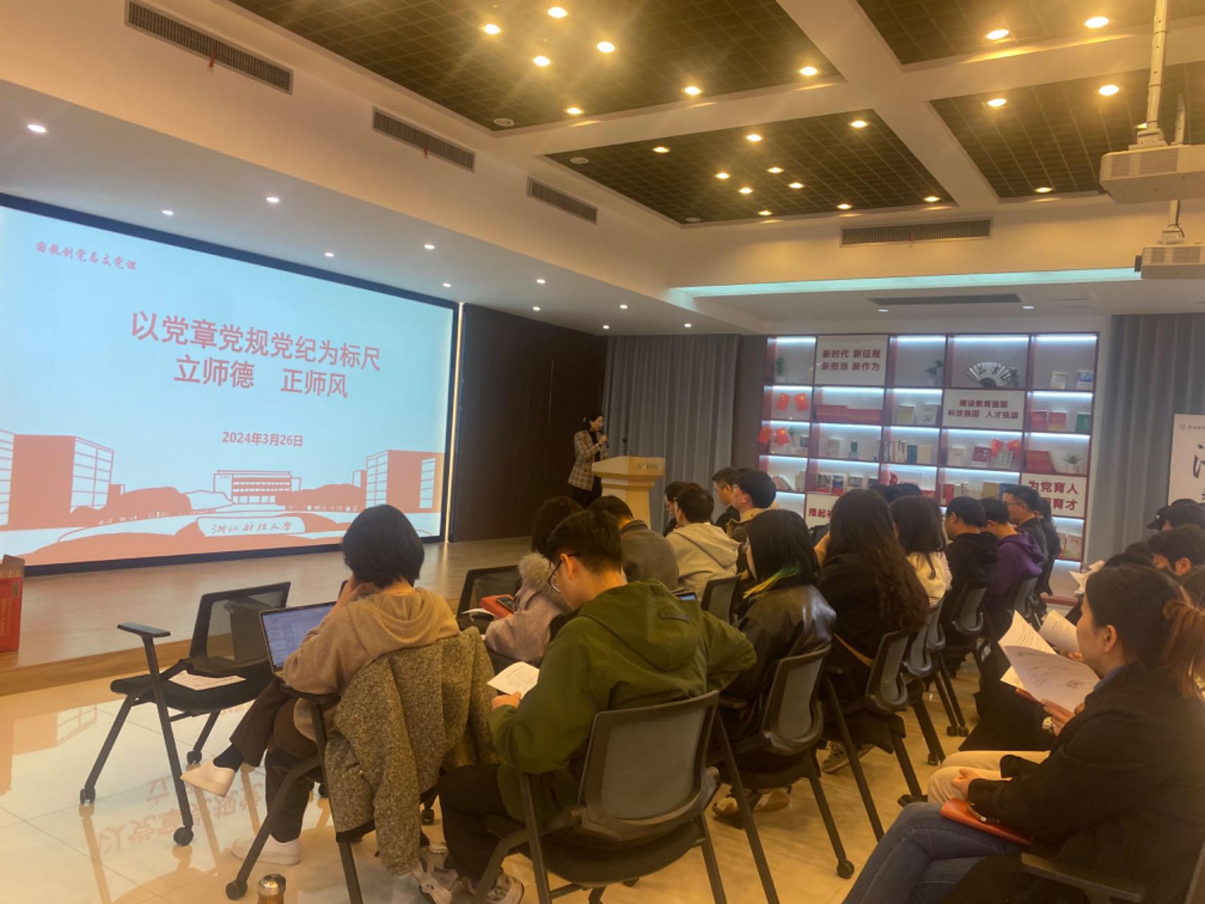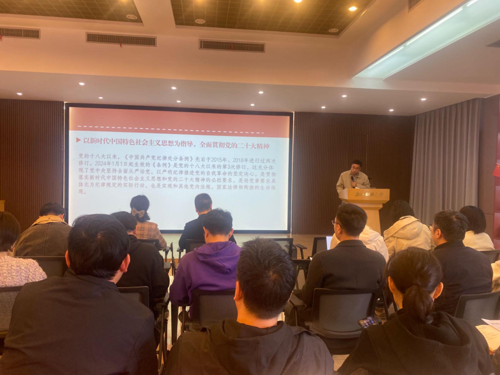 3月26日,党总支召开第一季度党员大会,党总支书记黄金娟、纪检委员林坚分别以《以党章党规党纪为标尺 立师德 正师风》、《〈中国共产党纪律处分条例〉解读》为题,带领全体教职工党员深入学习贯彻习近平总书记关于党的自我革命的重要思想,二十届中央纪委三次全会和省纪委十五届三次全会部署要求,《中国共产党纪律处分条例》《中国共产党巡视工作条例》等党规党纪。会上还通过运用公开通报的《容错免责典型案例选编》进行案例领学、《师德师风案例通报案例》等开展警示教育,引导全体党员进一步明确严管厚爱结合、激励约束并重的党干部管理方针,深刻认识党风廉政建设的重要性和必要性,要从警示教育的典型案例中引以为戒,从灵魂深处筑牢反腐倡廉的思想道德防线。