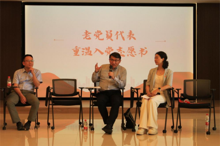 党员代表分别从“重温入党志愿” “分享入党故事” “发表入党感言”三个角度畅谈自己的“入党初心”,讲述自己的奋斗故事,共话信党爱党为党情怀。中国乡村振兴研究院院长、创业学院老党员代表魏遐深情地回忆年轻时听党话、跟党走,在党的关怀和教育下走向投身国家乡村振兴战略的经历,她以“利他”二字勉励年轻党员要不断学习,磨砺意志,增长才干,真正为国家、为社会办实事,办好事。