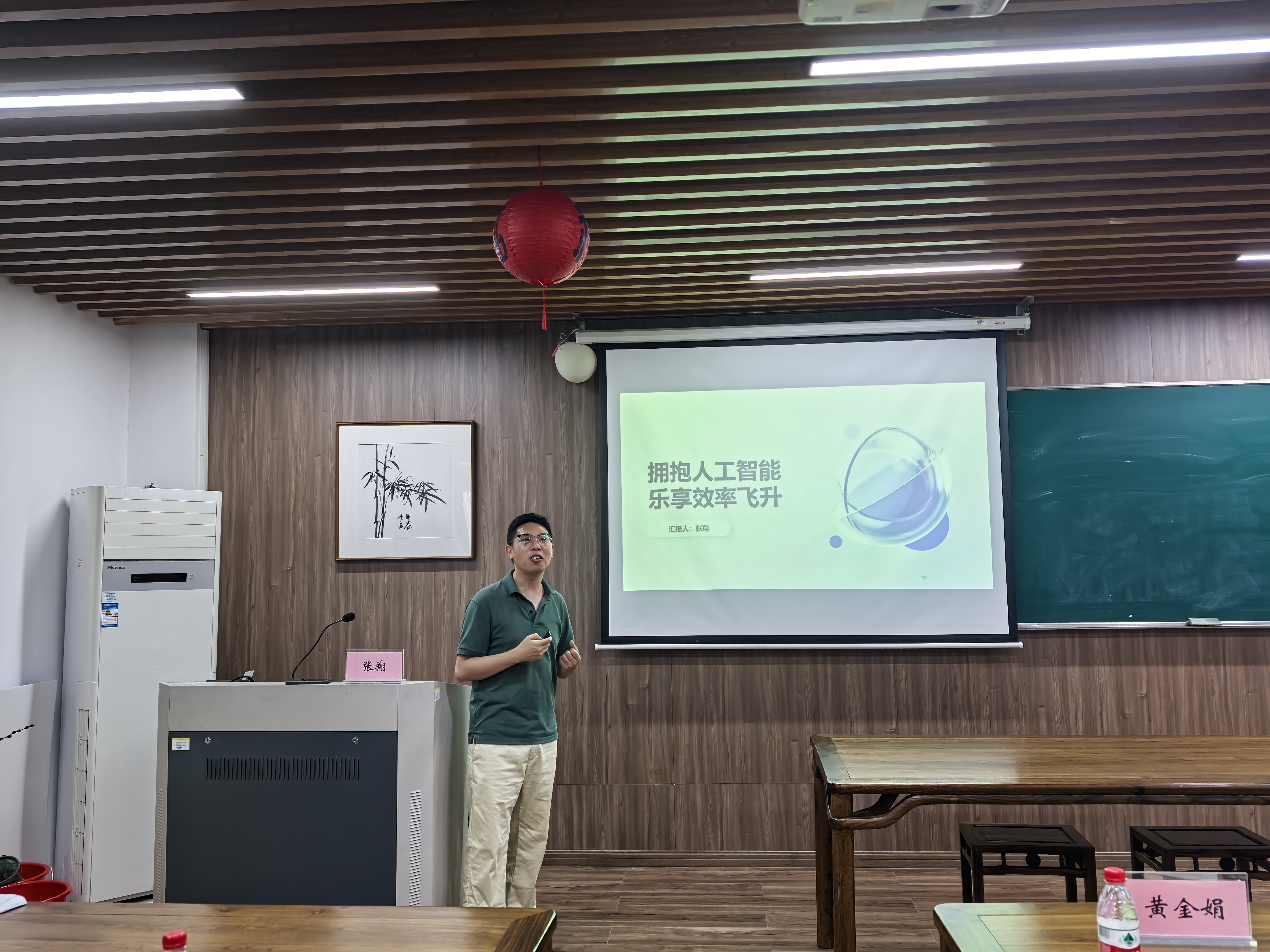会上,信智学院张翔博士以“拥抱人工智能,乐享效率飞升”为题进行授课,系统介绍了生成式人工智能发展历史及应用现状,重点解读了AI在文案编辑、PPT制作、数据分析、创意配图等方面的多种使用方法,让参训学员深刻地体会到AI工具在提高效率、降低成本方面的优势,也激发了积极运用AI工具辅助实际工作的热情。