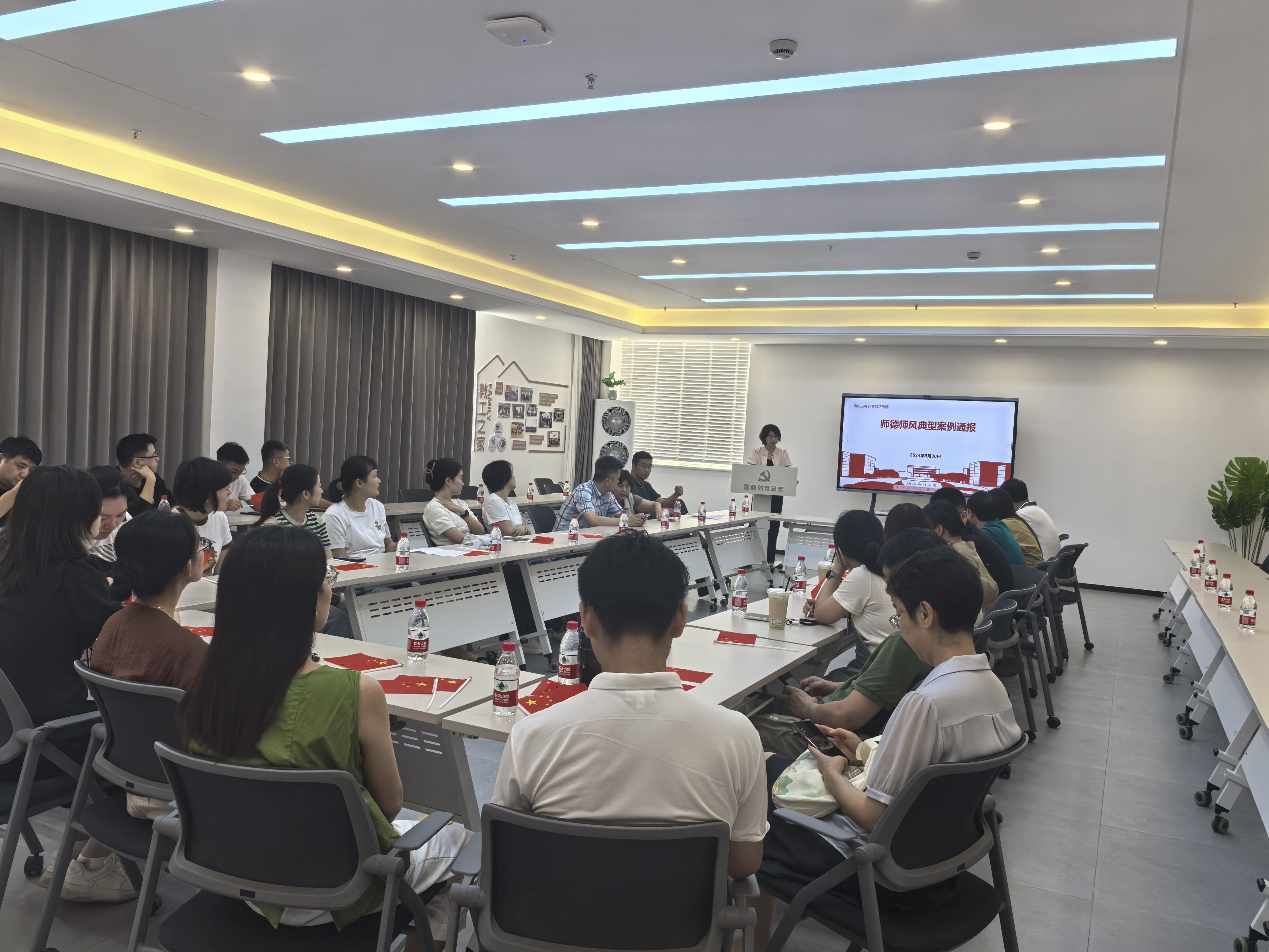 随后,为深入学习贯彻党的二十届三中全会精神,学习贯彻习近平总书记在全国教育大会上的重要讲话精神,党总支开展2024年秋季师德专题教育会,党总支书记黄金娟重点围绕教育家精神和《新时代高校教师职业行为十项准则》等政策法规和近期国内学校发生的师德失范典型案例展开警示教育。创业学院党支部书记、院长童夏雨以《大力弘扬教育家精神,与时偕行贡献力量》为主题讲授专题党课,让教师们感受到教师职业,在快速发展的新时代下依然保留的崇高与神圣,又通过时事分析强调知准则、守纪律,铭记教育初心,严守师德底线的重要性。