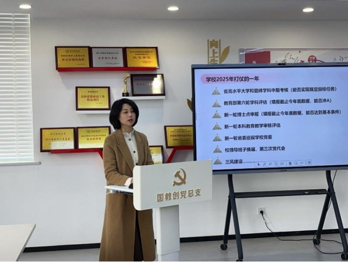 3月7日上午,国教创党总支在唯实楼519会议室召开党风廉政专题党课暨2025年第一次全体教职工大会。会议由党总支书记黄金娟主持,全体教职工参加。会议以“筑牢廉洁防线 护航教育发展”为主题,结合党风廉政建设与年度重点工作部署,进一步凝聚共识、明确方向。