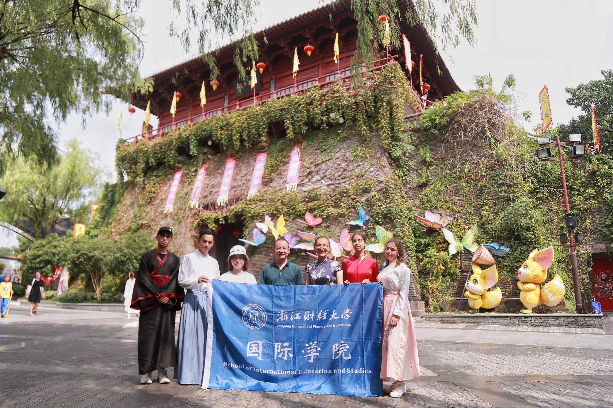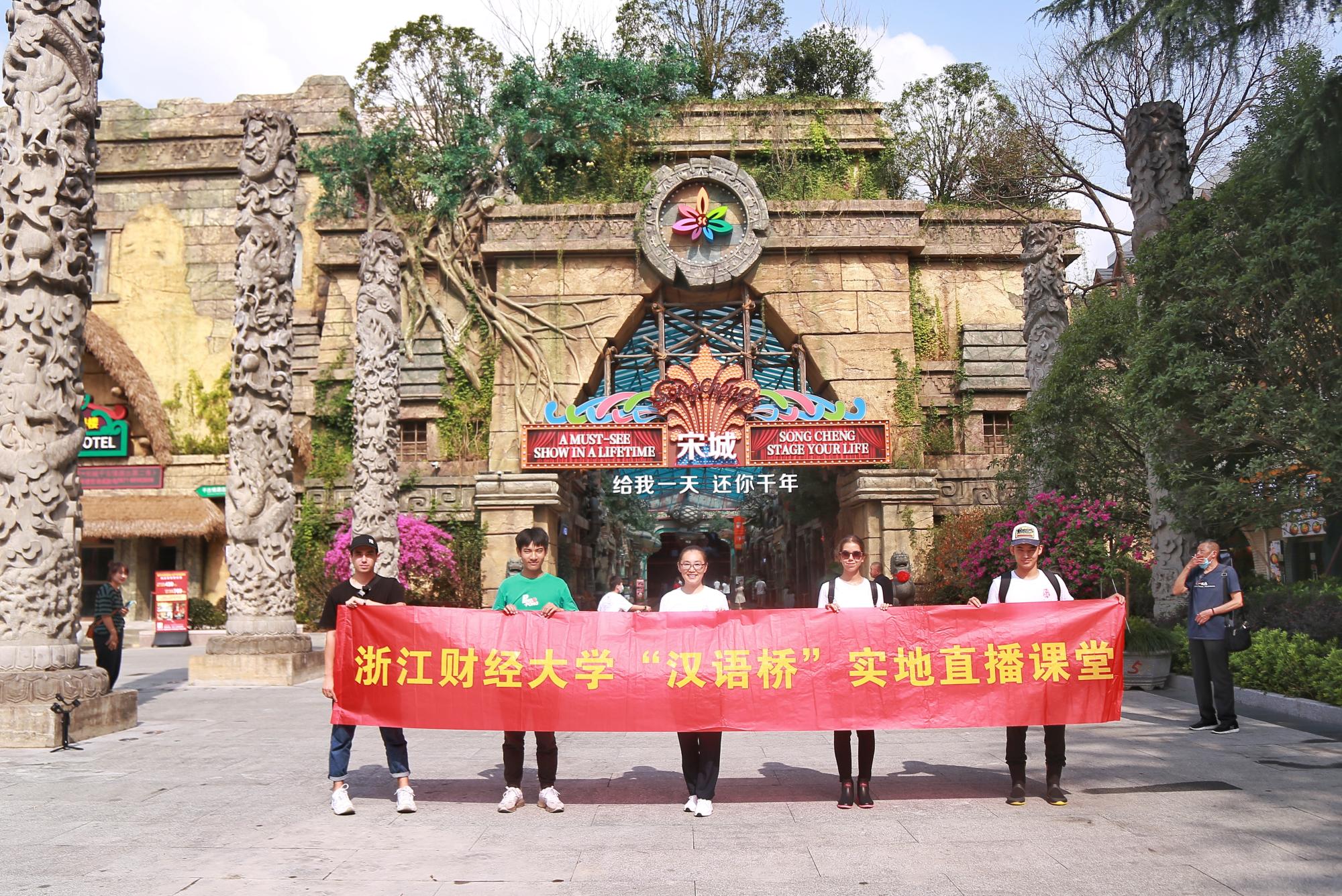 数名中外学生赴宋城景区参观,并进行“汉语桥”实地直播课堂录制。