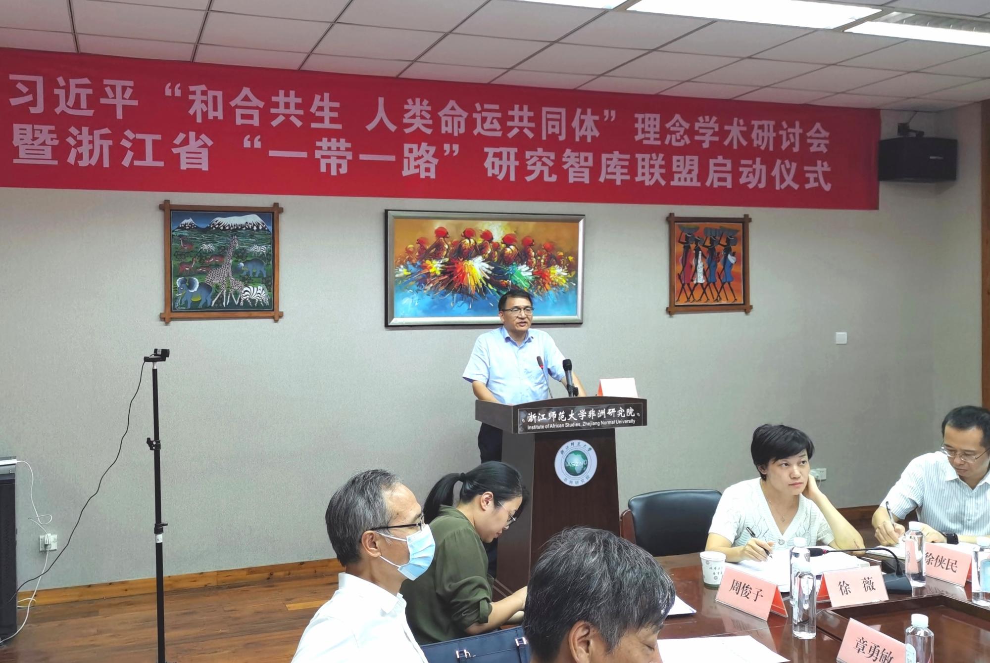 2021年9月1日,习近平“和合共生 人类命运共同体”理念学术研讨会暨浙江省“一带一路”研究智库联盟启动仪式在浙江师范大学举行。会议由浙江省社科联作为指导单位,浙江师范大学非洲研究院、中国社会科学网联合主办。