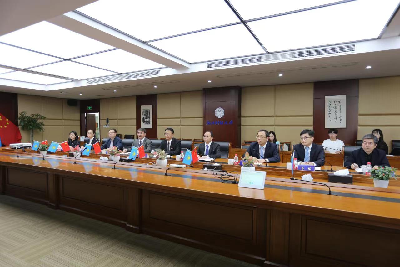 积极践行“一带一路”倡议,不断深化国际交流,做了大量卓有成效的工作。学校致力于中哈之间的友好交流与合作,是浙江省哈萨克斯坦留学生人数最多的高校之一。他强调,学校将在中哈合作“黄金30年”的新起点背景下,积极探索在中哈合作的科学研究、人才培养、社会服务和文化交流等方面的新路径和新举措,进一步推进建设国内首家专注于哈萨克斯坦经济社会研究的学术平台,做出特色,形成品牌。中国驻哈萨克斯坦大使张霄先生通过视频致辞。张霄大使在致辞中回顾总结了中哈两国建交30年来,在政治、经贸和文化等领域卓有成效的合作。今年9月习近平主席对哈萨克斯坦进行国事访问,是新冠疫情爆发以来习主席的境外首访、首站,充分体现了习主席对中哈关系的高度重视,也再次彰显了新时代中哈关系的高水平和特殊性。张霄大使指出,哈萨克斯坦持续多年重视和落实减贫政策,不断与时俱进,开拓创新。作为永久全面战略伙伴,中方愿同哈方在经济发展、减贫扶贫方面交流有益经验,加强互利合作,为不断增进两国人民的福祉,推动构建中哈命运共同体做出不懈努力。
